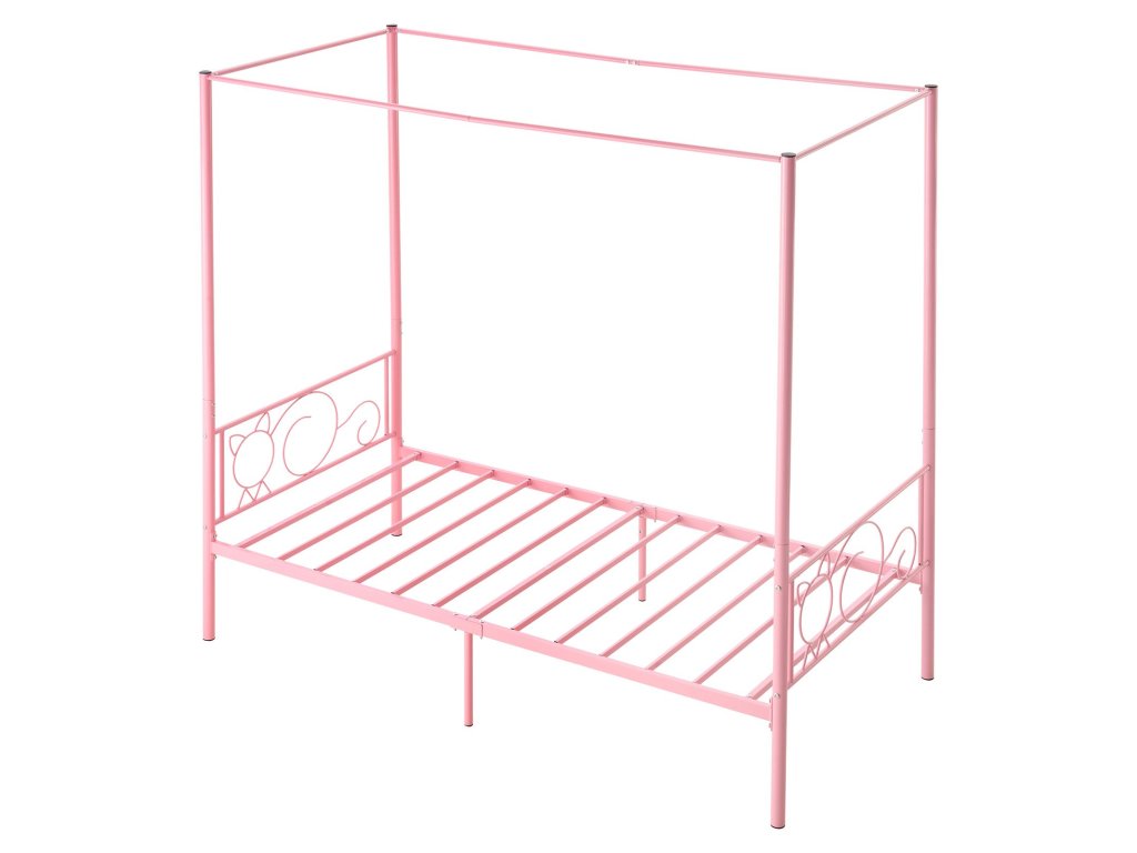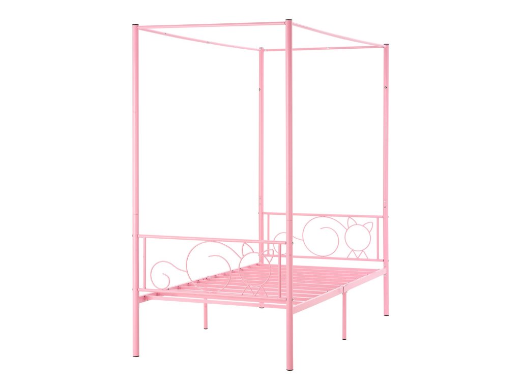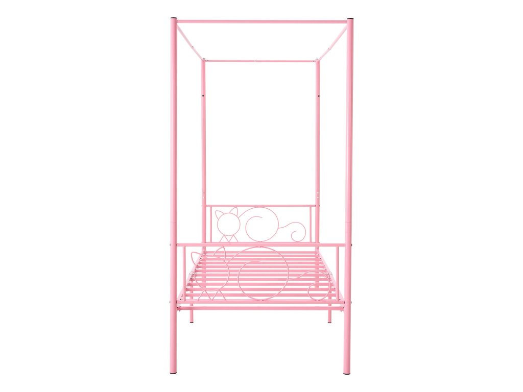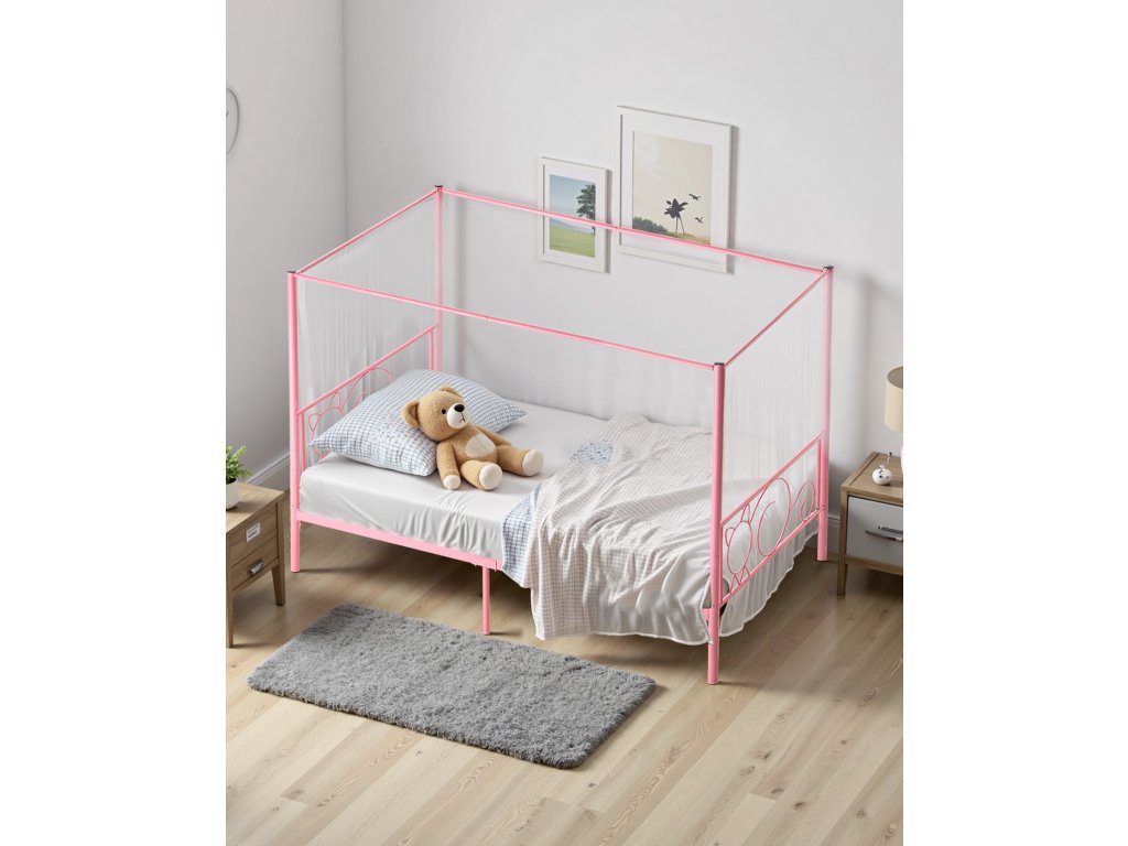 Fém baldachinos franciaágy, tároló, lécek, rózsaszín