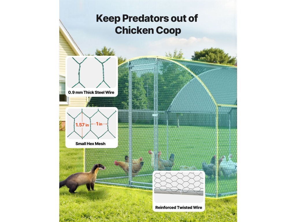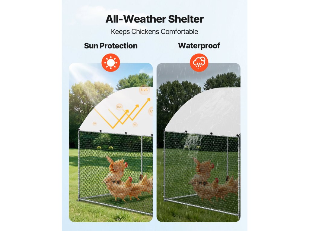 Fém csirketárolónk horganyzott acélcsőből készült, a korrózió megelőzése érdekében sós permetezéssel tesztelt. Biztonságos és hangulatos, kiváló minőségű otthont biztosít csirkéinek, esőben vagy napsütésben.