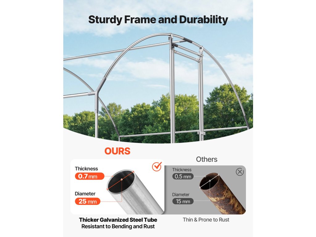 Fém csirketárolónk horganyzott acélcsőből készült, a korrózió megelőzése érdekében sós permetezéssel tesztelt. Biztonságos és hangulatos, kiváló minőségű otthont biztosít csirkéinek, esőben vagy napsütésben.