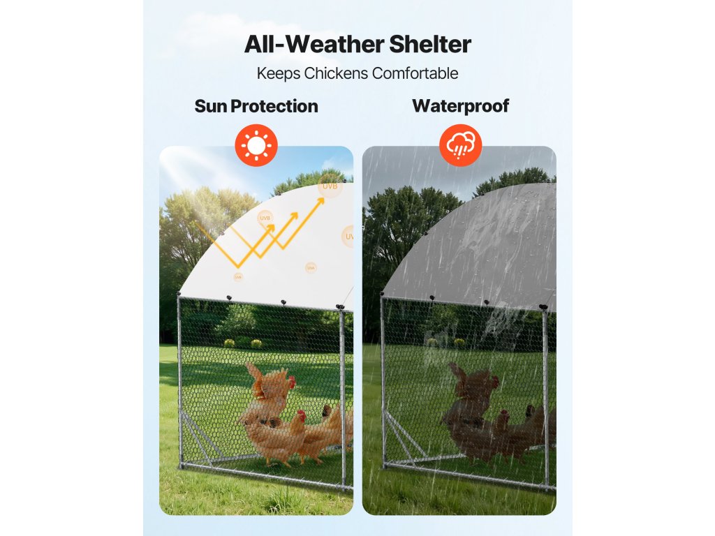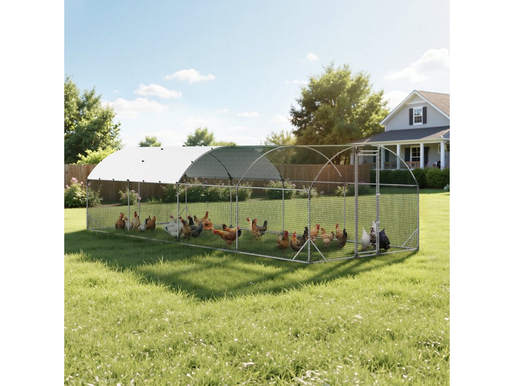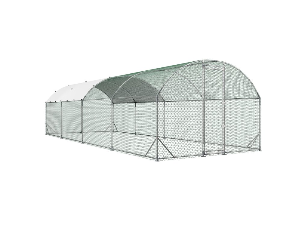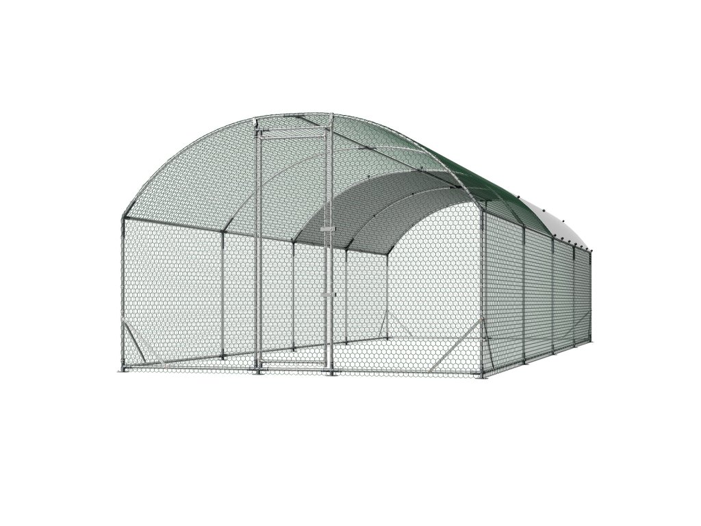 Fém tyúkól kifutóval 2,7 × 7,6 × 2 m, vízálló, masszív váz