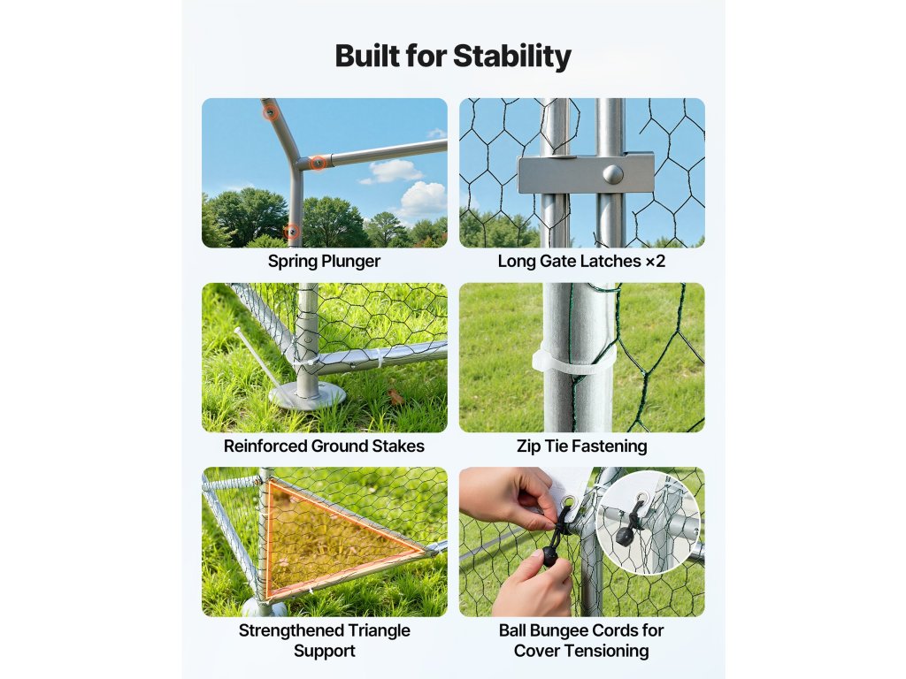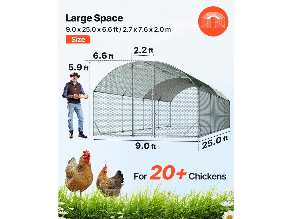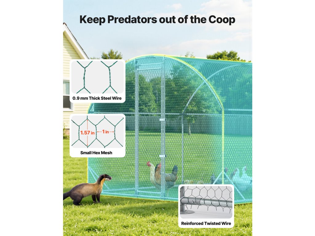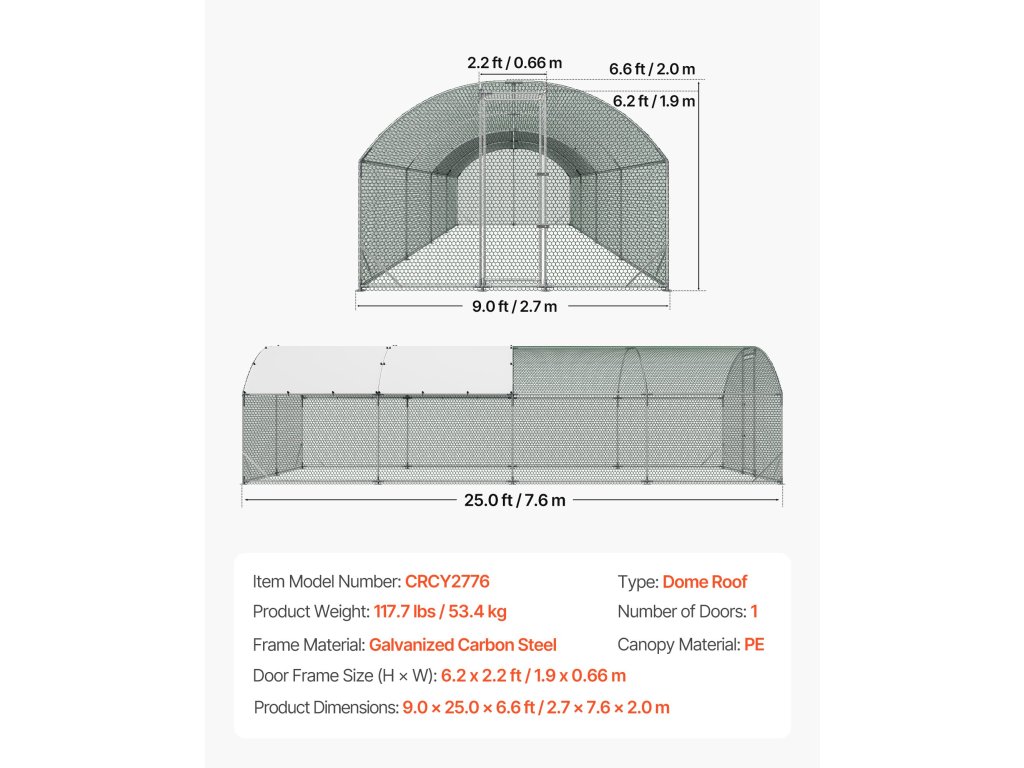 Fém tyúkól kifutóval 2,7 × 7,6 × 2 m, vízálló, masszív váz