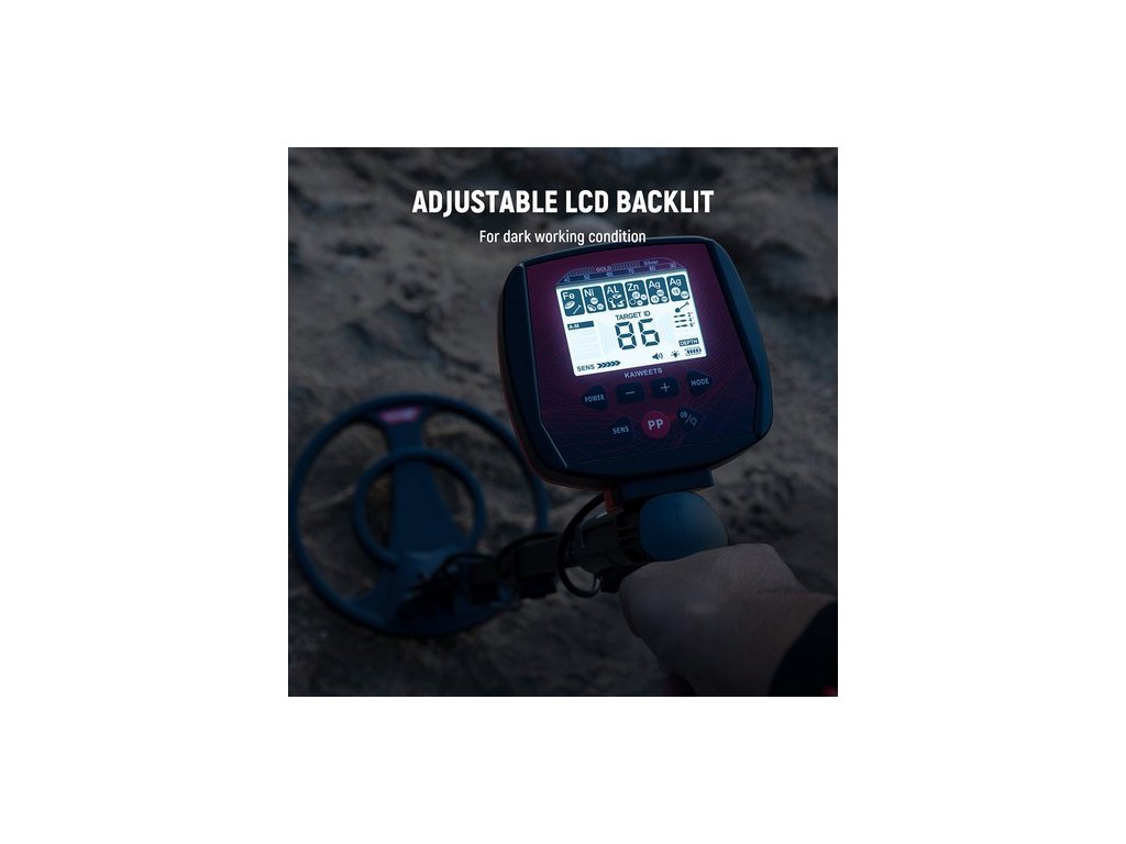 Az intuitív LCD kijelzőn könnyen leolvashatja a 6 féle fém ikonokat, a pontos érzékelési értéket, az üzemmódokat, a hangerőt, az érzékenységet, a mélységet stb. A 3 azonosítási módszer (digitális, kép, hang) lehetővé teszi a fém típusának egyszerű azonosítását. A háttérvilágítás lehetővé teszi, hogy sötétben is dolgozhasson, így sokkal nagyobb rugalmasságot biztosít.