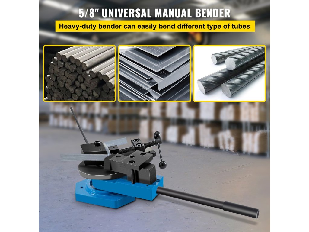 Ez a fémhajlító kompatibilis rézzel, acéllal, alumíniummal stb. Lapos acél maximális mérete: 1-3/16" x 5/16" (30 x 8 mm); kerek acél: 5/8" (15,8 mm); négyzet alakú acél: 19/32" (15 mm).