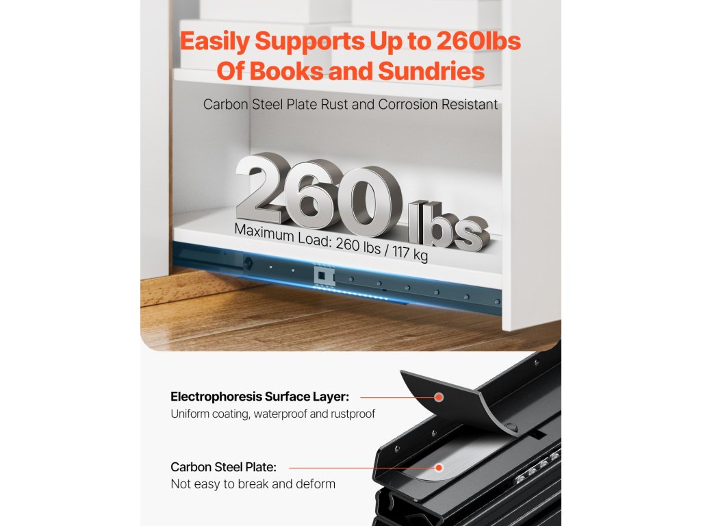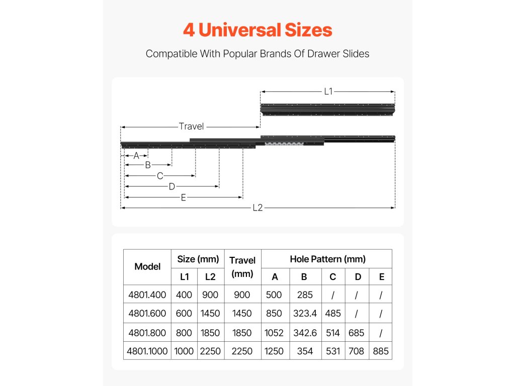 A kiváló 260 font kapacitással ezek a bővítmények megbízható tárolást garantálnak. A 2 mm vastag szénacélból készült, elektroforetikus bevonattal ellátott, korrózió- és vízállóságot biztosító, sima és csendes működés, teljes háromfokozatú kiterjesztés és könnyed siklás jellemzi őket.