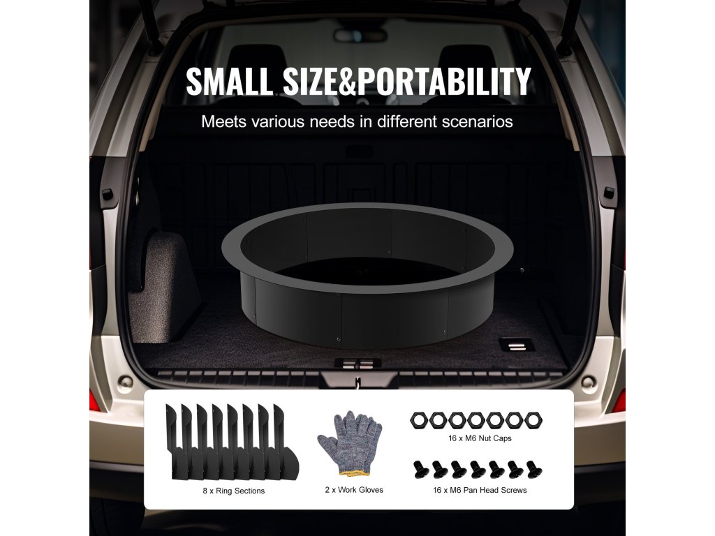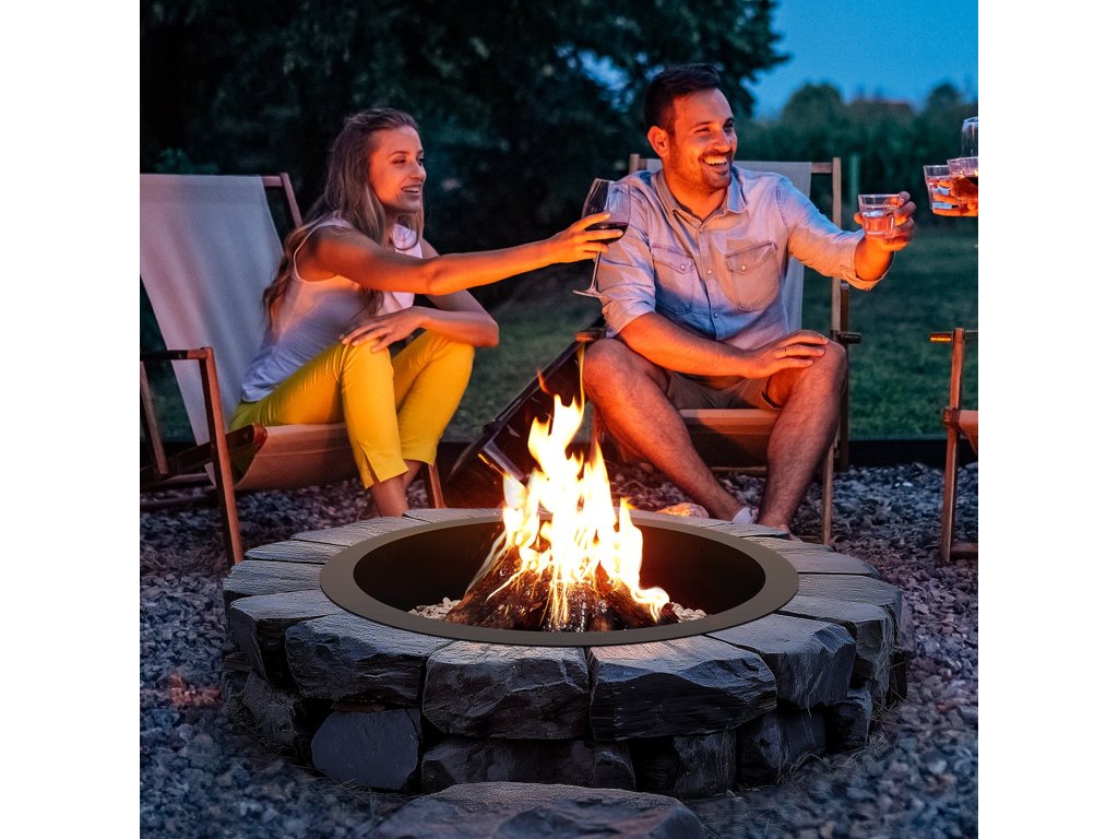 A magas hőmérsékletnek ellenálló szénacélból készült, matt fekete porszórt bevonattal ellátott kandallógyűrű ellenáll a korróziónak és a rozsdának. Bőséges helyet biztosít a lángnak, tökéletes a parkban vagy a hátsó udvarban való táborozáshoz, melegítő hangulatot teremtve az ünnepi estékhez vagy a baráti összejövetelekhez.