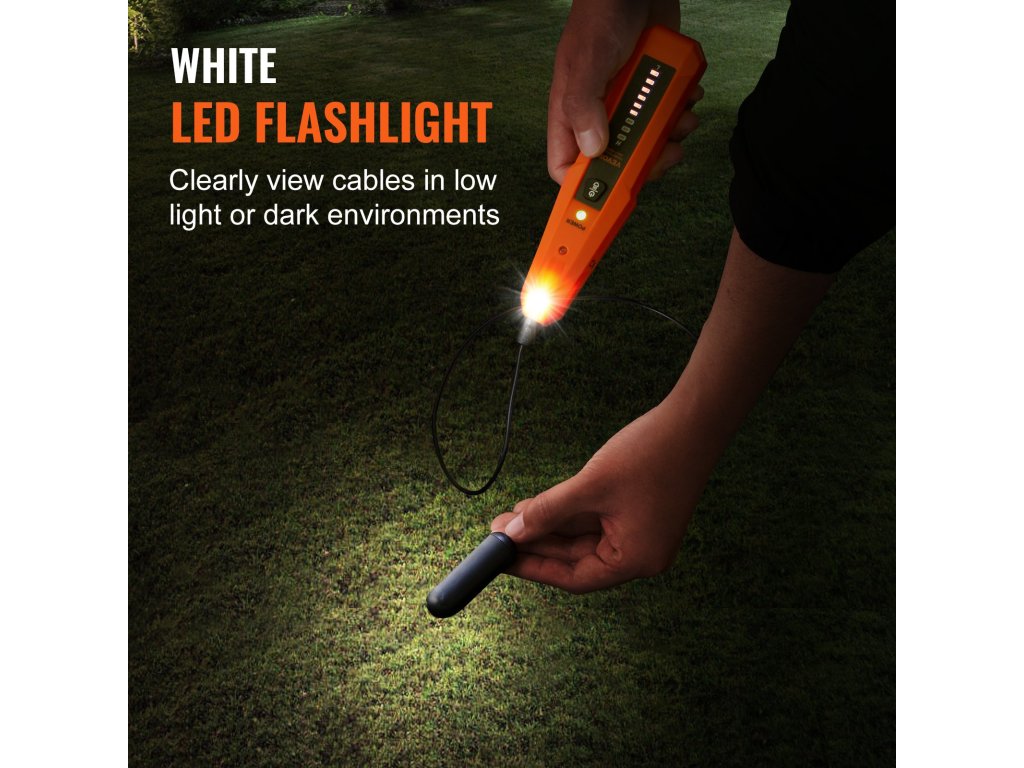 Ez a földalatti kábelek keresője feszültség nélküli kábelek helyének meghatározására szolgál, kifejezetten egymagvú kábelekhez vagy párhuzamosan vezetett kétmagvú kábelekhez tervezve. Ideális kisállat-kábelek, csővezetékek, földalatti öntözőkábelek és építési területeken lévő kábelek felderítésére.