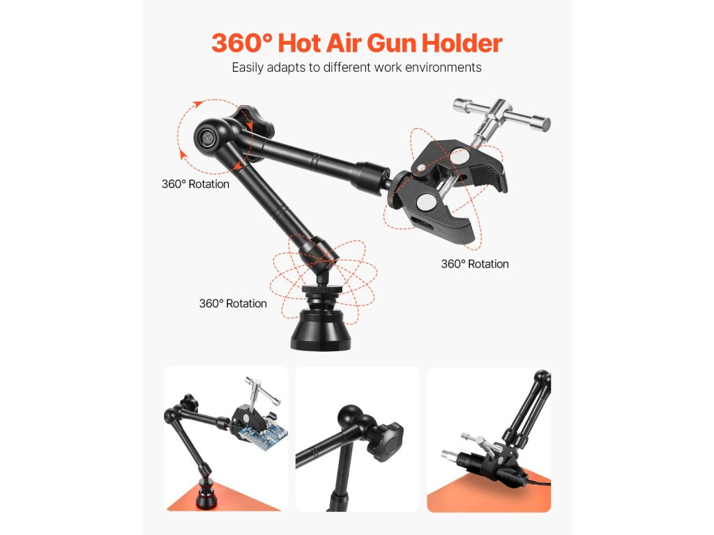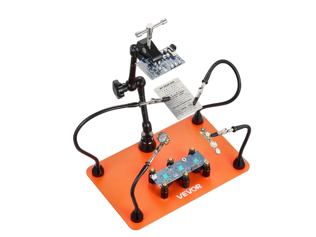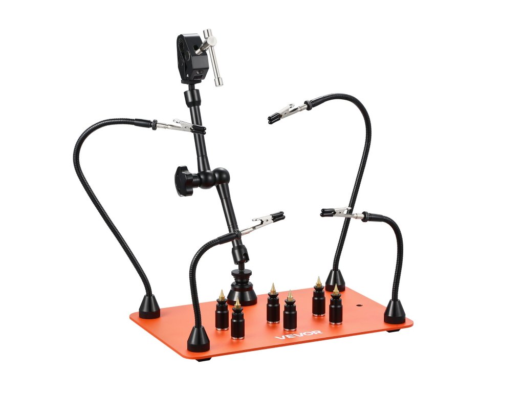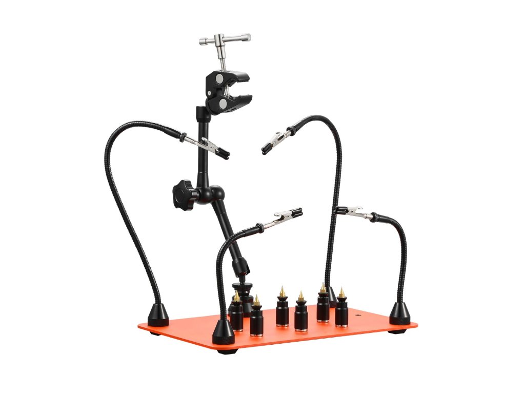 Forrasztást segítő karjaink 4 rugalmas karral rendelkeznek, amelyek 360°-ban szabadon hajlíthatók, lehetővé téve a szög és a magasság könnyű beállítását az alkatrészek pontos elhelyezéséhez. Ideálisak bármilyen méretű projektekhez, teljesen felszabadítják a kezét, és hatékonyabbá teszik a munkát.