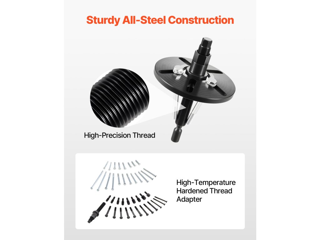 A harmonikus kiegyenlítőhúzó menetes adaptere hőkezelt a nagyobb szilárdság érdekében, míg az összes alkatrész prémium minőségű acélból készült a hosszú élettartam és a kopásállóság érdekében.