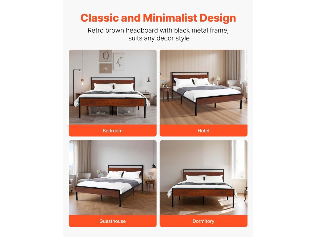 Kiváló minőségű fémből készült az erős alátámasztás és a csendes alvás érdekében. A tizenkét hüvelykes belmagasság bőséges tárolóhelyet biztosít az ágy alatt. Könnyű és gyors összeszerelés, amelyhez nem szükséges speciális szerszám vagy szakértelem - frissítse hálószobáját még ma.