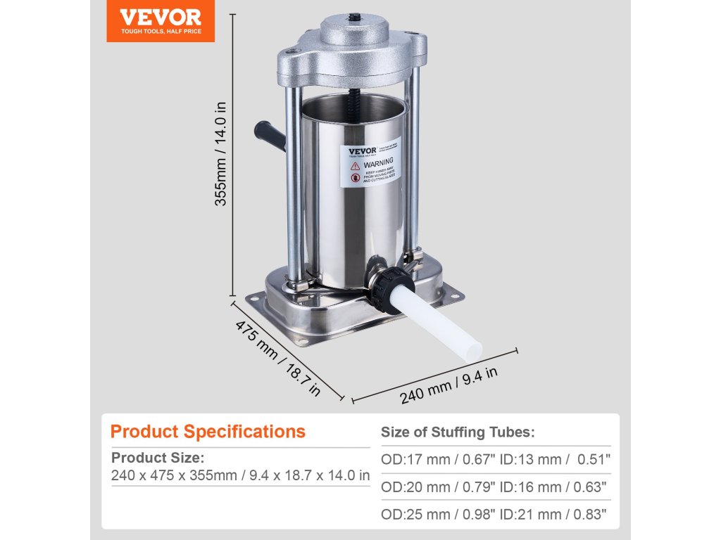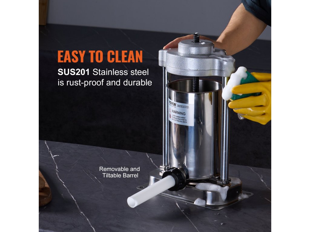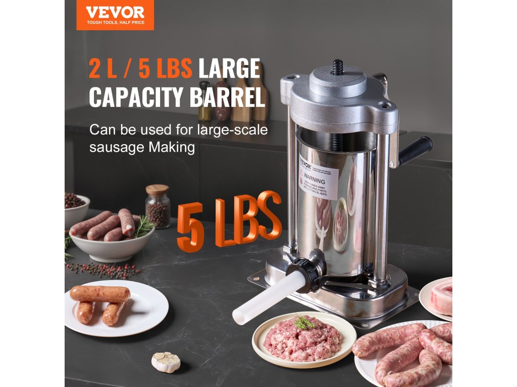 A VEVOR kolbásztöltő lehetővé teszi, hogy egyszerűen hozzáadja a hústölteléket, összenyomja és elfordítsa a fogantyút, hogy kolbászokat készítsen. Élelmiszer minőségű rozsdamentes acélból készült, 3 különböző méretű töltőcsővel rendelkezik, amelyek különböző típusú kolbászok készítésére alkalmasak, ideális mind háztartási, mind kereskedelmi használatra.