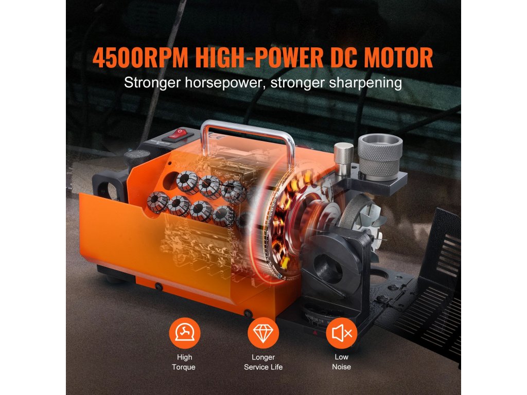 Hordozható fúrócsiszolónk erős egyenáramú motorral van felszerelve az erős és stabil teljesítmény érdekében. A 4500 fordulat/perc nagy sebességű fordulatszámmal, erős nyomatékkal, hosszú élettartamú tartóssággal és minimális zajjal ez a fúróélező robusztus támogatást nyújt az Ön élezési feladataihoz.
