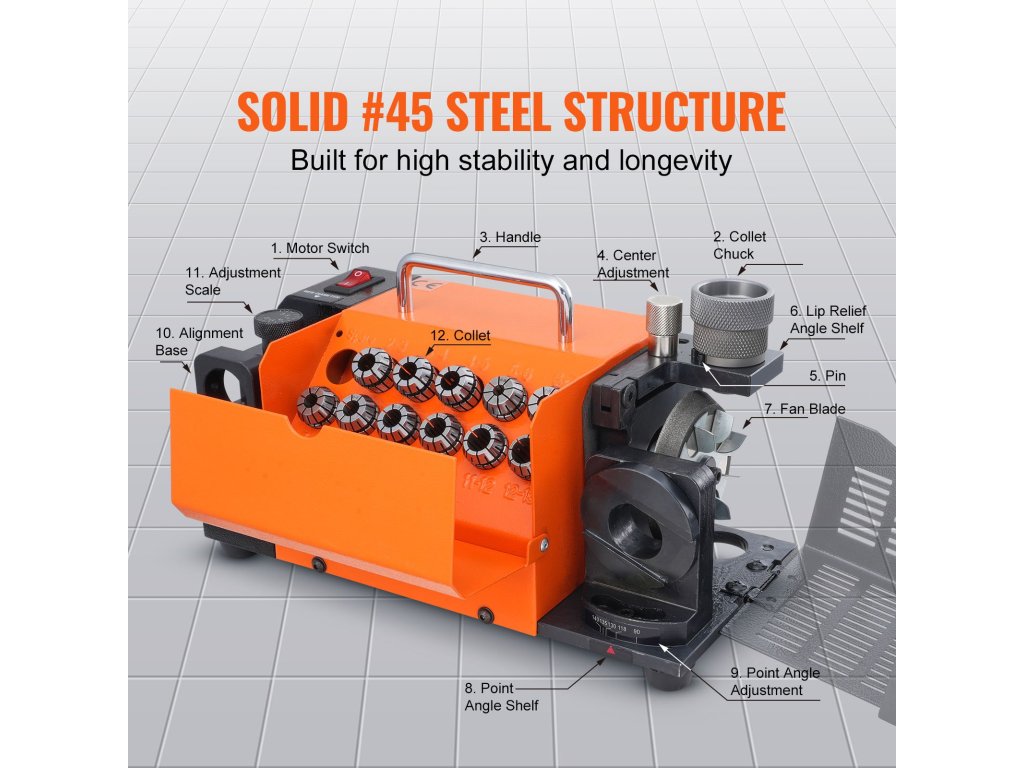 Tapasztalja meg a pontosságot és a hatékonyságot a VEVOR fúróhegy-élezővel! A 95°-tól 135°-ig állítható hegyszöggel és 11 gyűjtővel biztosítja az f3 és f13 közötti átmérőjű fúrószárak pontos és stabil élezését. Válasszon a különböző anyagokhoz való CBN és SDC köszörűkorongok közül a hatékonyság optimalizálása érdekében.