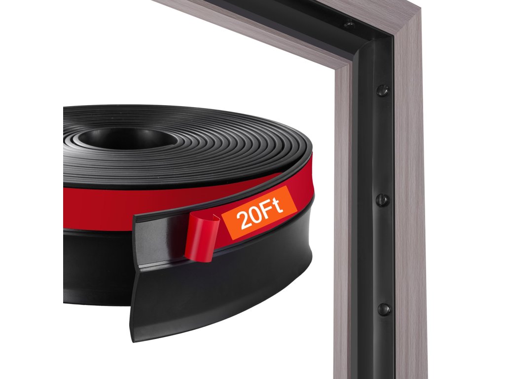 Garázsajtó felső és oldalsó szigetelőszalag, 20 láb, fekete, tpe, ragasztószalaggal