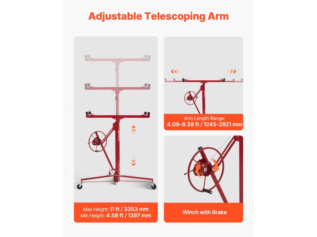 Gipszkarton emelő 3353 mm, teherbírás 68 kg, teleszkópos kar