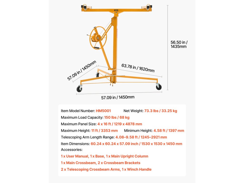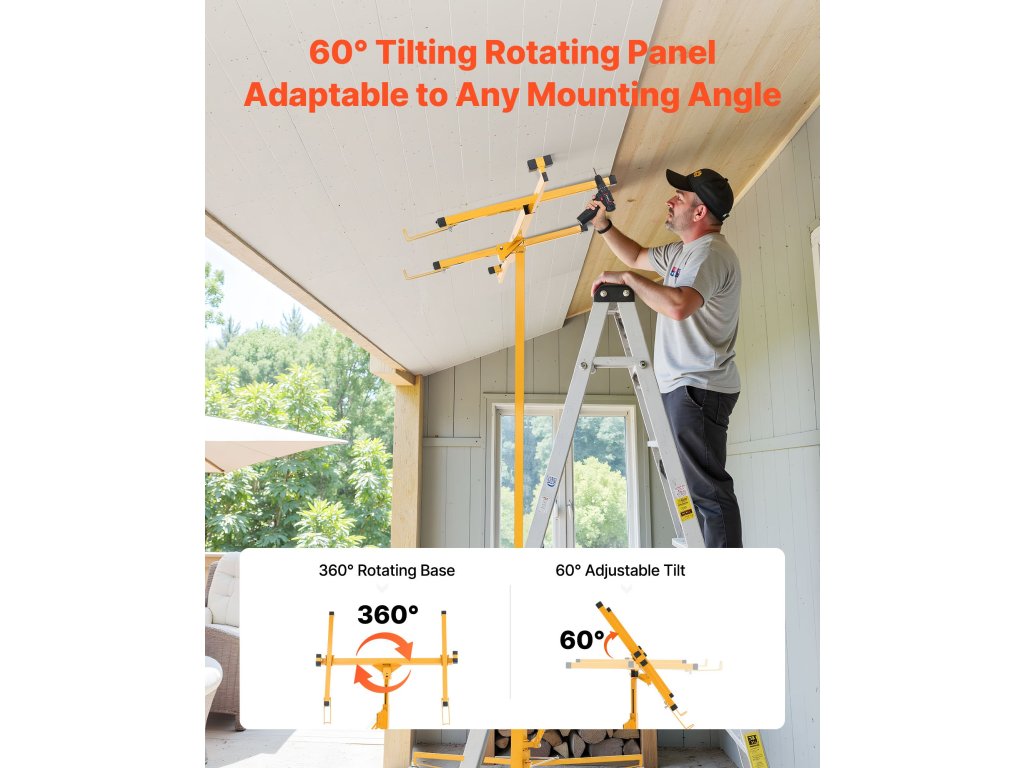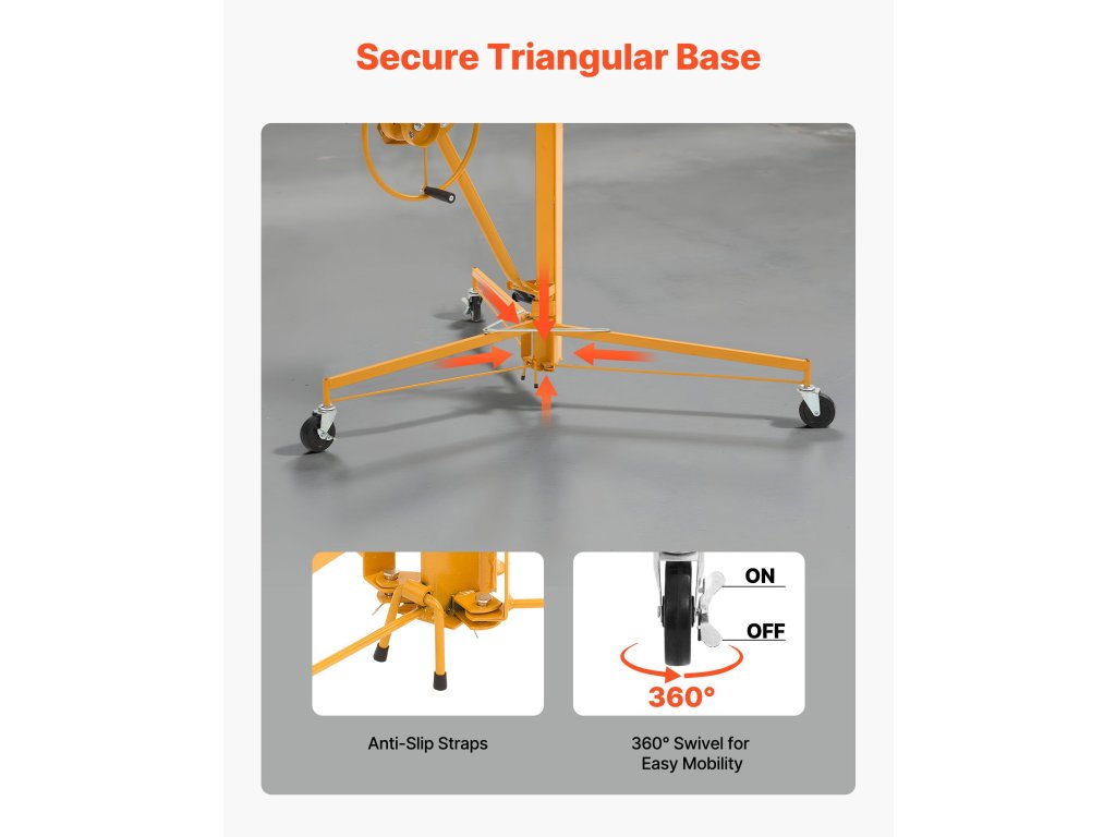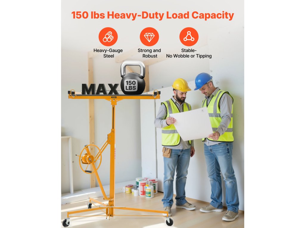 Összeszerelés vagy szétszerelés másodpercek alatt, szerszámok nélkül. Akár 150 fontot is elbír. Görgőkkel és fékkel felszerelt a kiváló stabilitás és a zökkenőmentes mobilitás érdekében, így ideális a mennyezeten és a falakon történő egyszerű gipszkartonszereléshez.