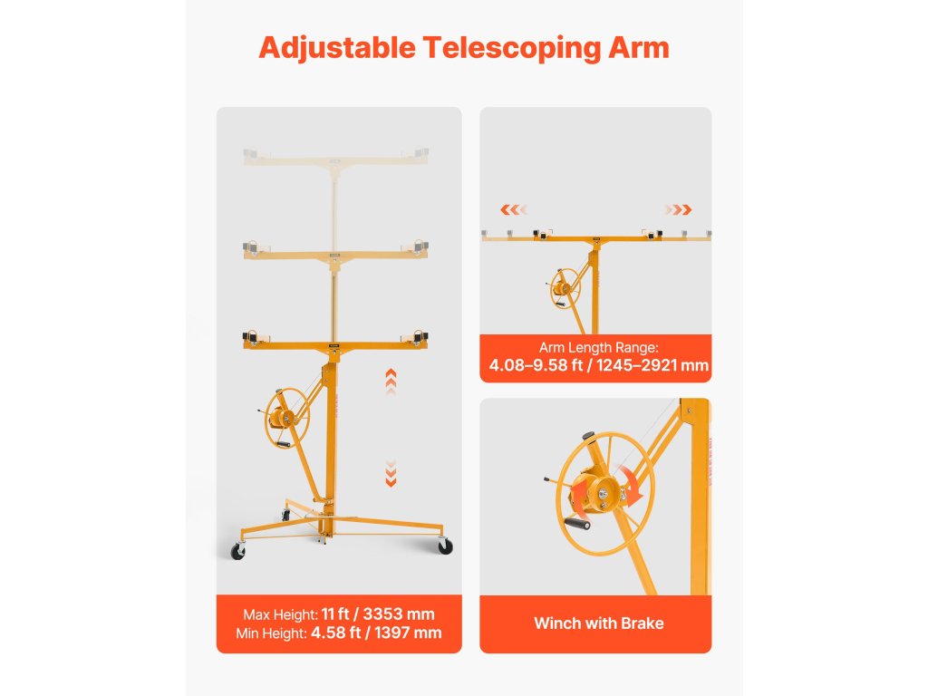 Gipszkarton emelő 3353 mm, teherbírás 68 kg, teleszkópos kar