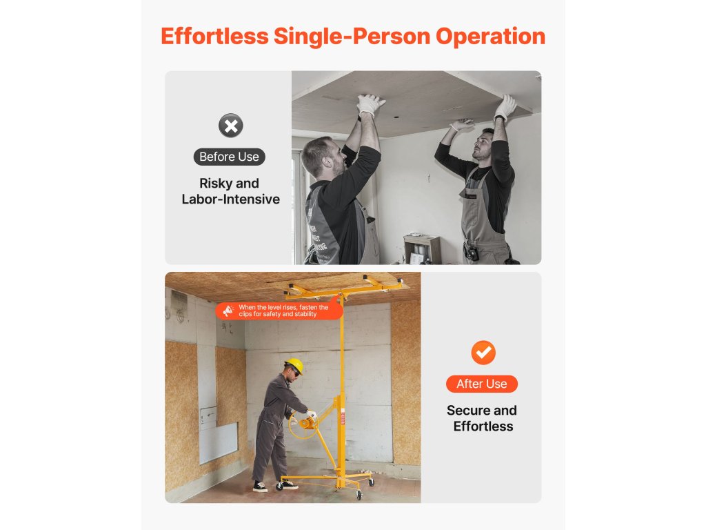 Ez az emelő könnyedén kezeli a különböző anyagokat, beleértve a gipszkartont, a fapaneleket, a fémlemezeket, a PVC-lemezeket és még sok más anyagot, kielégítve a különféle felújítási igényeket.