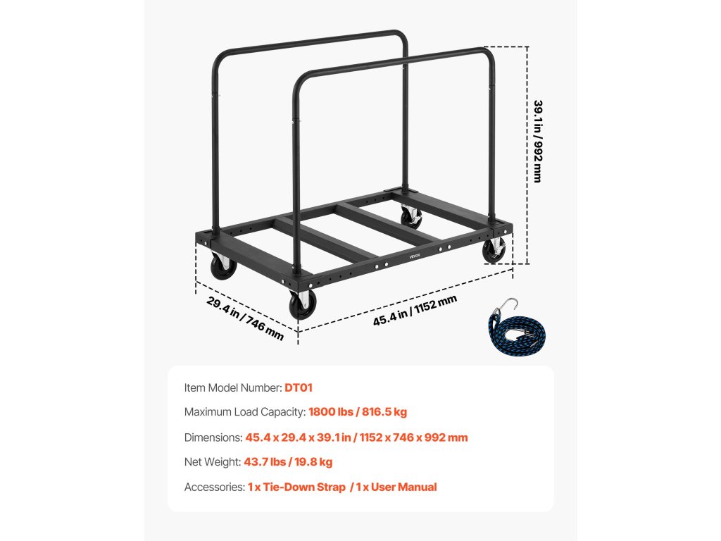 Ez a nagy teherbírású acél panelkocsi akár 1800 kg-ot is elbír. Több panel könnyű mozgatását teszi lehetővé, így munkamegtakarítást, hatékonyságnövelést és biztonságos szállítást biztosít.