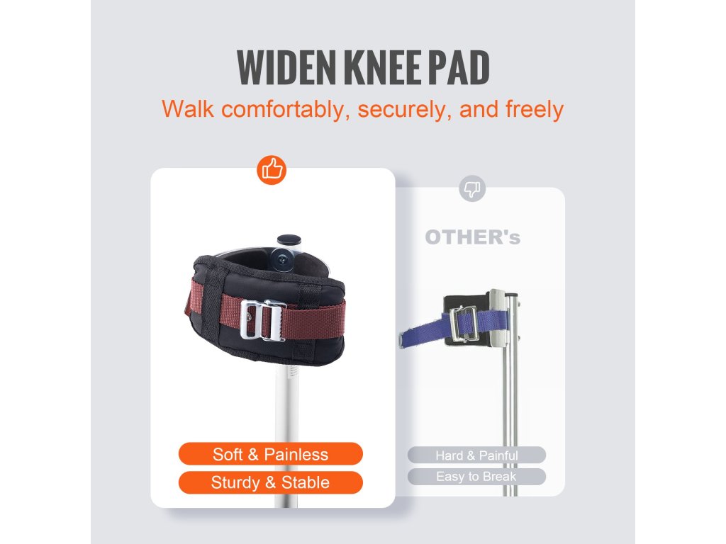 V: A VEVOR száraz konstrukciójú járókeretek meghosszabbított térdpárnás pántokat alkalmaznak, amelyek hosszú használat után is puhán tartják a lábát.