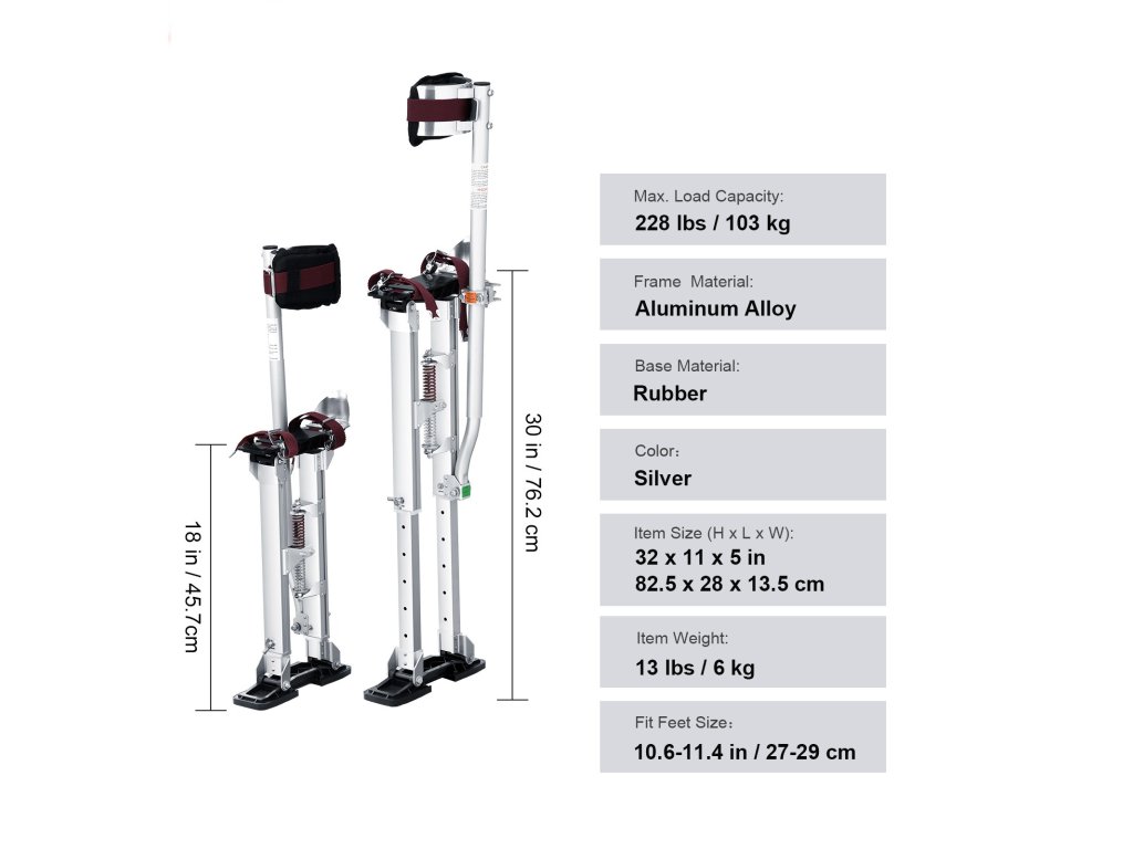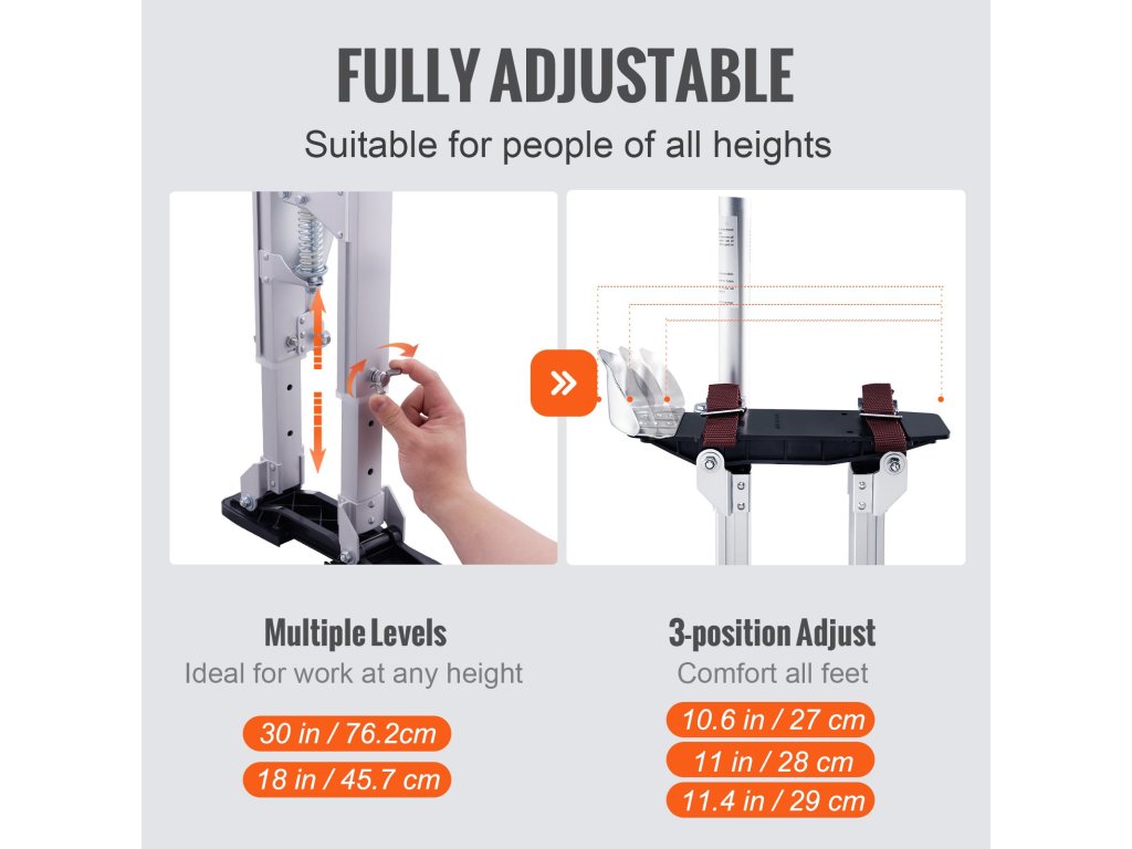 Chrániče VEVOR na sadrokartónové dosky majú úžasné nastaviteľné funkcie. Môžete si nastaviť výšku od 18 do 30 palcov. Vďaka tomu sú ideálne na rôzne úlohy. Nezáleží na tom, či maľujete, lepíte alebo pracujete na sadrokartóne. Tieto chodúle sa dokážu prispôsobiť vašim potrebám. Nastaviteľná funkcia je užitočná najmä na dosiahnutie vyšších plôch bez toho, aby ste sa namáhali. Táto všestrannosť zaručuje, že s jedným párom chodúľ môžete vykonať viacero úloh, čo z nich robí neuveriteľne užitočný doplnok každej súpravy náradia. Okrem toho si môžete prispôsobiť veľkosť chodidla, čo prispieva k celkovej prispôsobivosti.