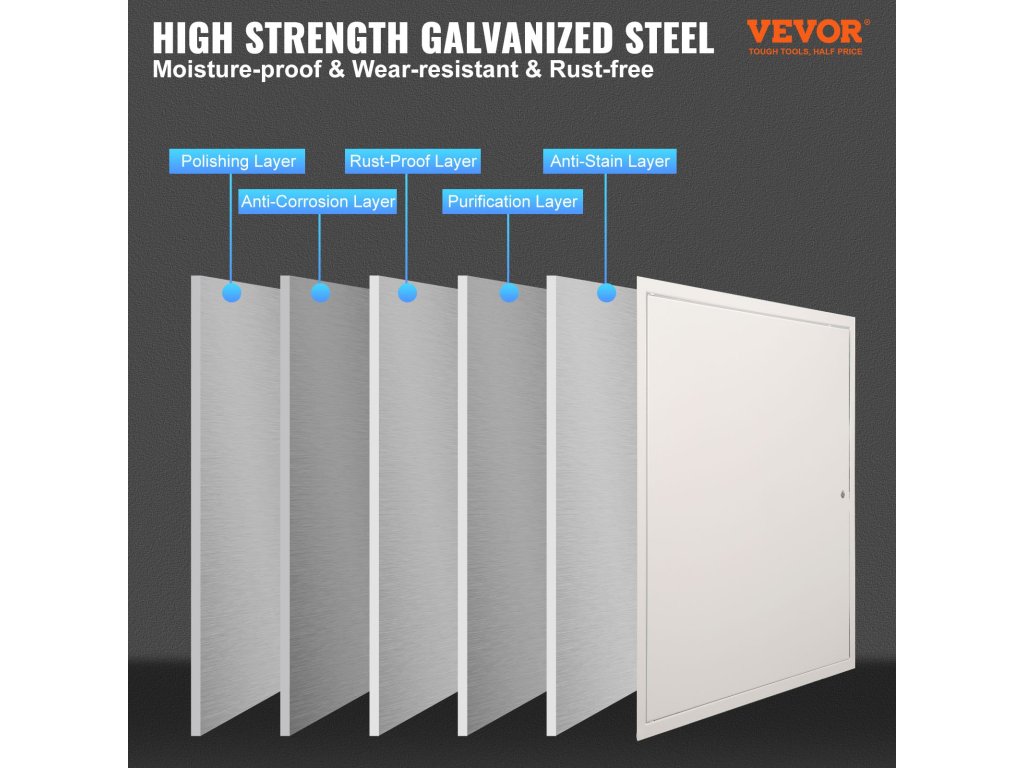 Ez a hozzáférési panel vastag horganyzott acélból készült, ami hosszabb élettartamot és nagyobb stabilitást garantál. Gyors váltóajtóval és 165°-os vizsgálati nyílással rendelkezik, így karbantartás céljából könnyen hozzáférhetővé teszi a berendezéseket, és leegyszerűsíti a javítási folyamatot.