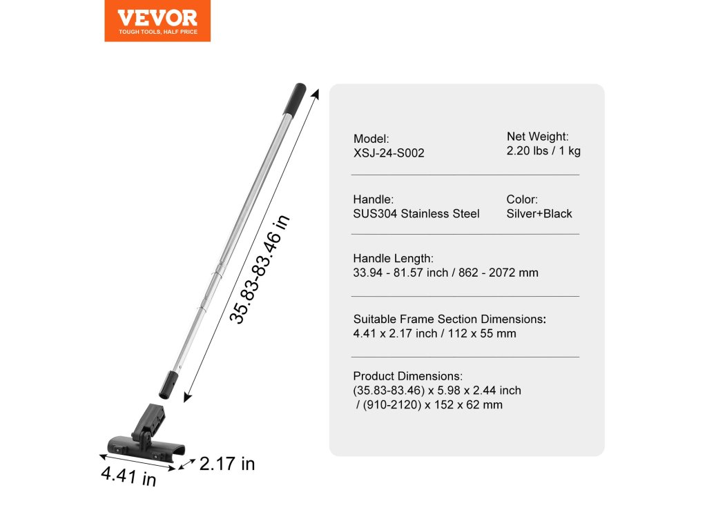 A teleszkópos nyél 34 és 81,6 hüvelyk között nyúlik ki, így a hossza a különböző építési távolságokhoz igazítható. Rövid távú munkákhoz azonnal használható, csökkentve a létra összeszerelésének idejét. Hosszabb távolságok esetén nincs szükség létrára, ami kényelmesebbé teszi a munkát.