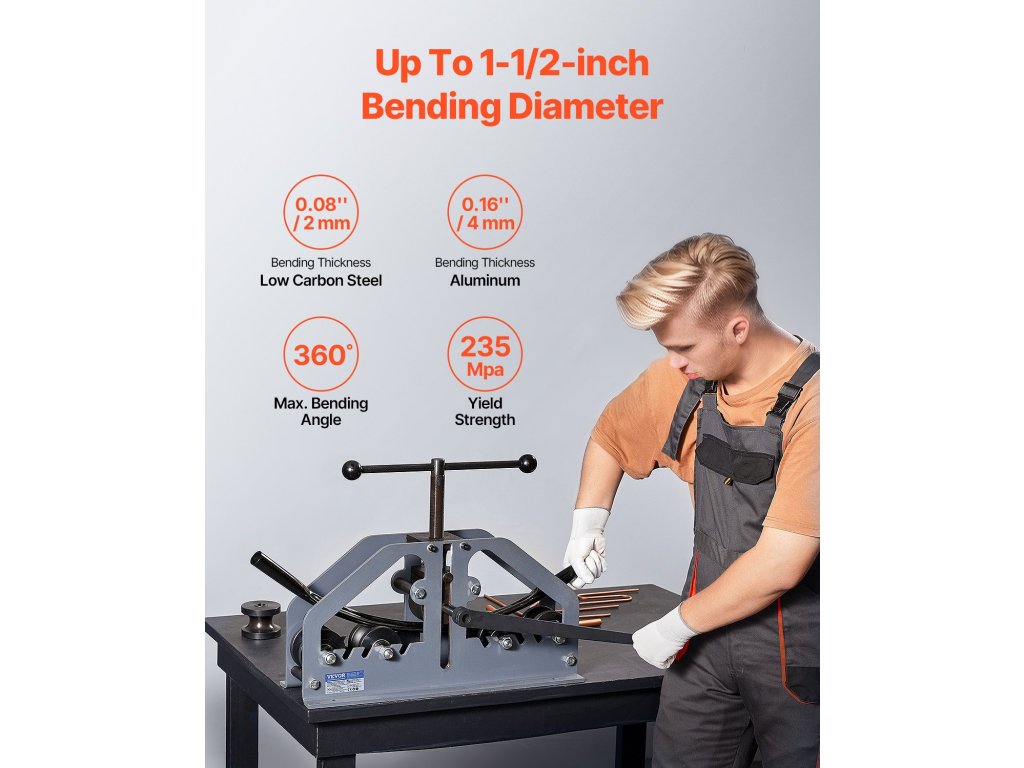 Ez a hengeres csőhajlító zökkenőmentesen működik acéllal, vassal, rézzel és alumíniummal, így ideális a klímaberendezések javításában, a fémgyártásban, az építőiparban, a fém bútorgyártásban és a csövek karbantartásában.