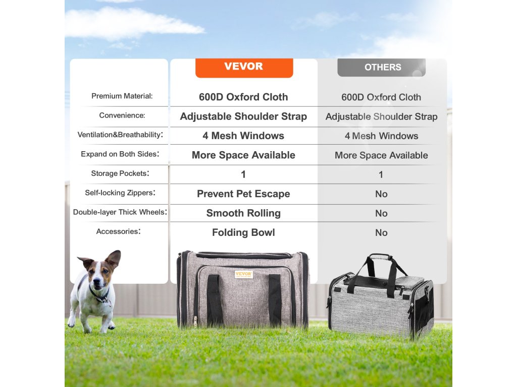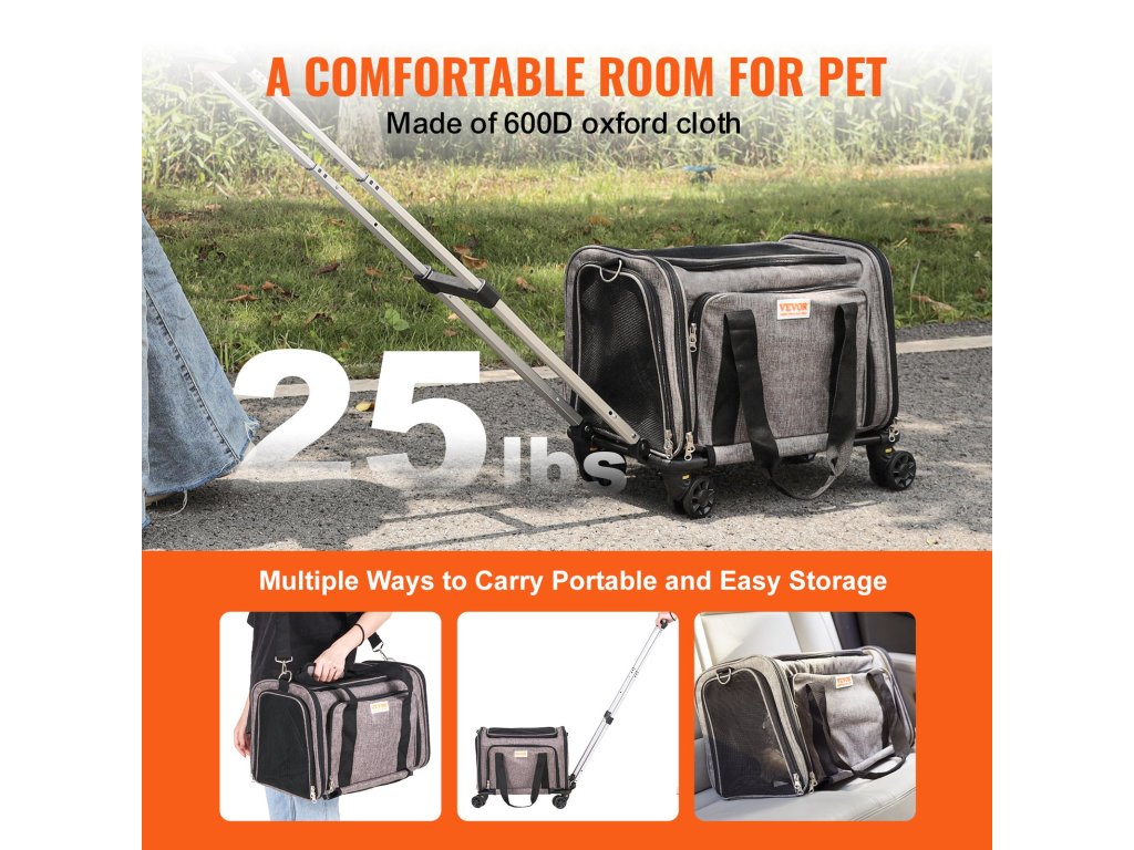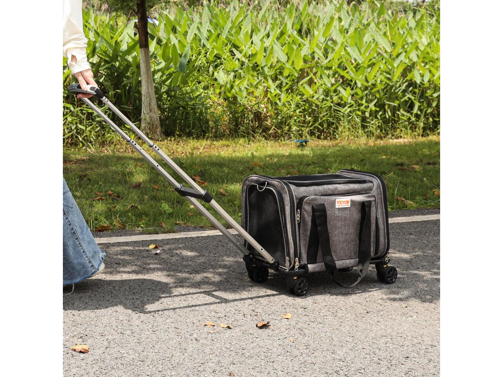 Ez a légitársaságok által jóváhagyott láda biztonságos és kényelmes helyet biztosít kedvence számára az utazáshoz. Strapabíró 600D Oxford szövetből készült, és erős teherbírással rendelkezik. A kétrétegű, tartós kerekeknek köszönhetően könnyen tolható és húzható. a 3 hordozási lehetőségnek köszönhetően hordozható és kényelmesen tárolható.