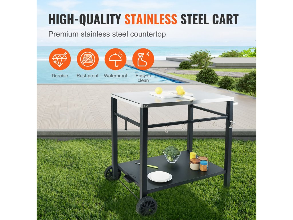 Használható grillasztalként vagy pizzaállványként, de használható ételkészítésre, tárolásra, szabadtéri étkezésre és még sok másra is. Kényelmes és praktikus munkaállomást biztosít a szabadtéri főzéshez.