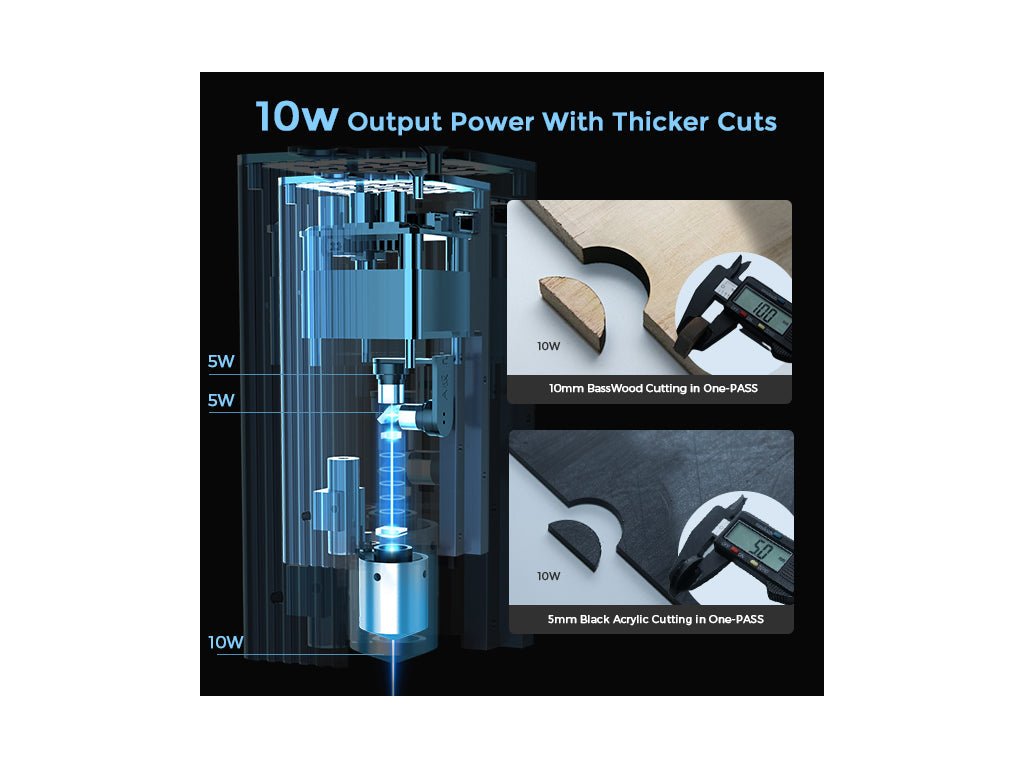 Erőteljes 10W-os kék lézer: Nagy pontosságú, hatékony gravírozást és vágást tesz lehetővé.