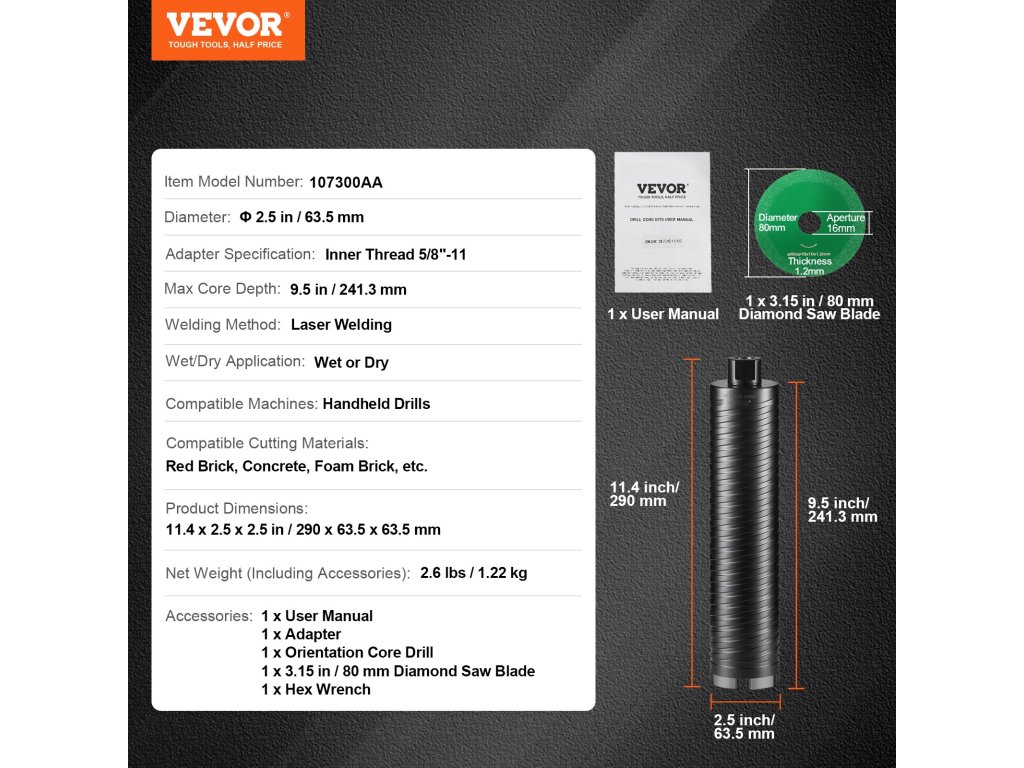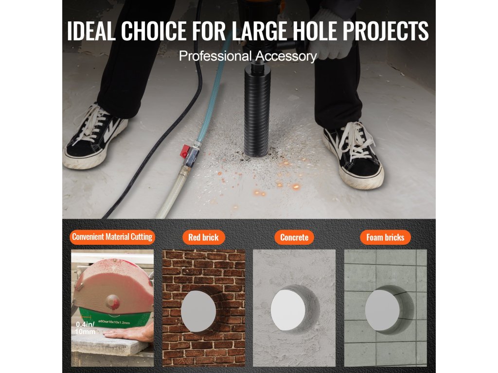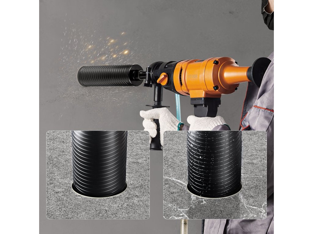 A nedves/száraz fúrómagfúró tiszta és pontos lyukakat készít kemény anyagokban, például vörös téglában, betonban, habtéglában és más anyagokban. Gyémánt fűrészlapot tartalmaz, amely lehetővé teszi a különböző anyagok pontos, sima és hatékony vágását.
