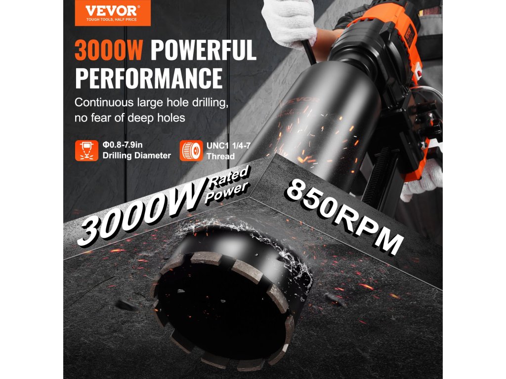 Gyémánt magfúró 2,03–20,1 cm, 3000 W, állvánnyal