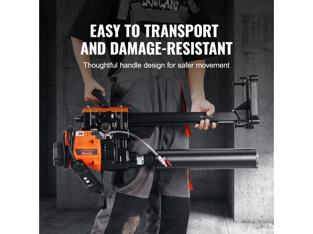 A fogantyú ergonomikus kialakításának köszönhetően könnyen használható a munkaterületen, miközben biztosítja a magfúró biztonságát és stabilitását szállítás és tárolás közben. Hatékonyan megakadályozza a szállítás közbeni ütések okozta sérüléseket.