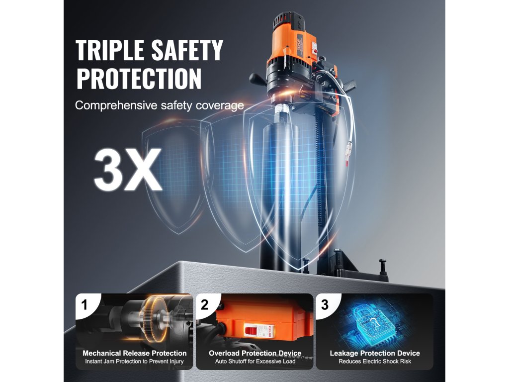Ez a betonmagfúró fejlett, vízzárás- és rézmentes kialakítással rendelkezik, amely jelentősen növeli a vízhozamot és biztosítja a nagy hatékonyságú működést. Még hosszabb használat során is megakadályozza a vízszivárgást, védi a munkaterületet, és tisztán és rendben tartja a munkaterületet.