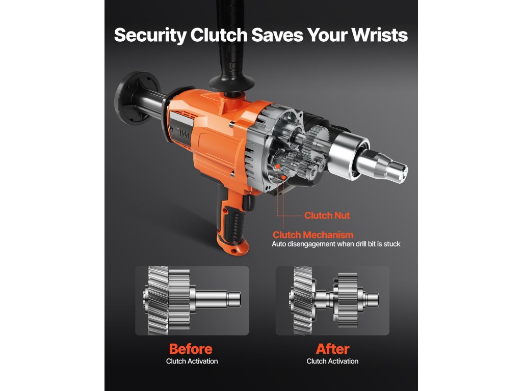 Maradjon védett munka közben. A magfúró beépített biztonsági tengelykapcsolója automatikusan kikapcsol, ha a fúrófej elakad, csökkentve ezzel a visszarúgást és segít megelőzni a csuklósérüléseket.