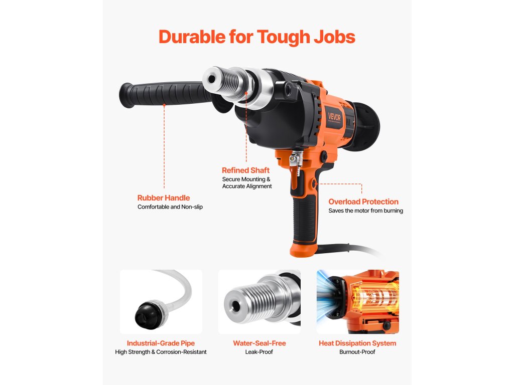 Dolgozzon magabiztosan. A gyémánt magfúró túlterhelés esetén automatikusan kikapcsol, hogy megakadályozza a motor kiégését, így a berendezés biztonságos és hosszú élettartamú marad.