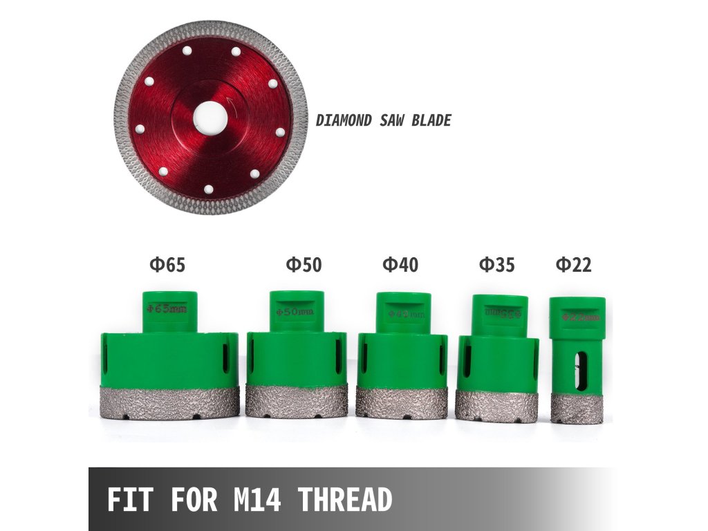 Gyémánt magfúró készlet M14 22/35/40/50/65MM gránit