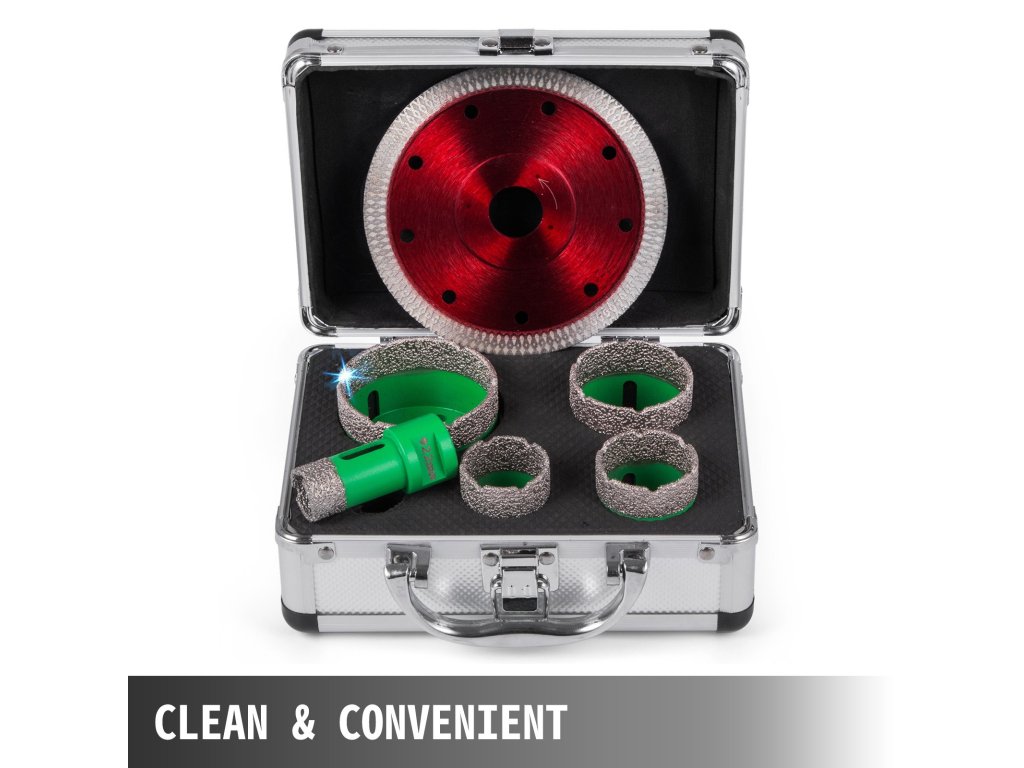 5 fúrószár van 68 mm, 50 mm, 40 mm, 35 mm és 1,4 mm átmérőjű pengével, amelyek megfelelnek a különböző igényeknek.