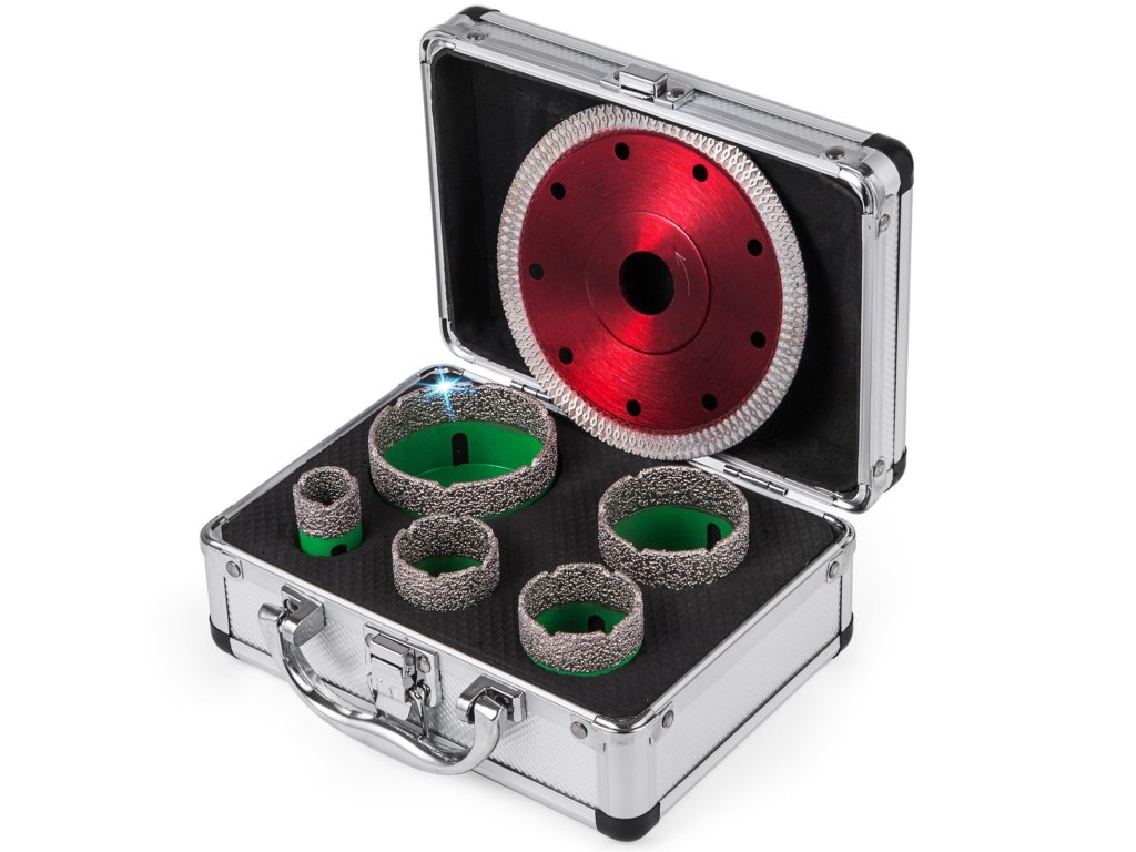 A csempefűrész garantálja a tiszta és pontos lyukak készítését a legkeményebb és legtartósabb anyagokon, mint például a csempe, gránit, márvány, egyéb kő és porcelán.