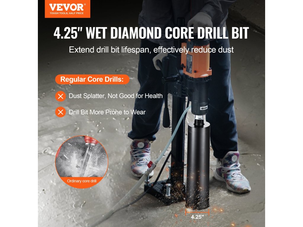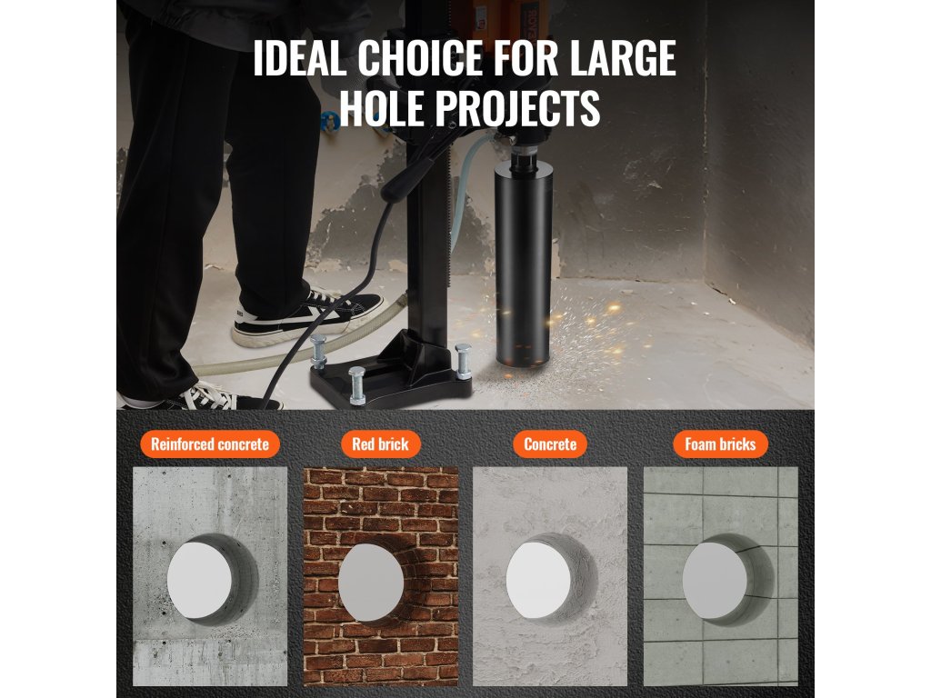A nedves fúró tiszta és pontos furatokat készít olyan kihívást jelentő anyagokban, mint a vasbeton, a vörös tégla, a beton, a habtégla és más anyagok. Gyémántfűrészlapot tartalmaz, amely lehetővé teszi a különböző anyagok pontos, sima és hatékony vágását.