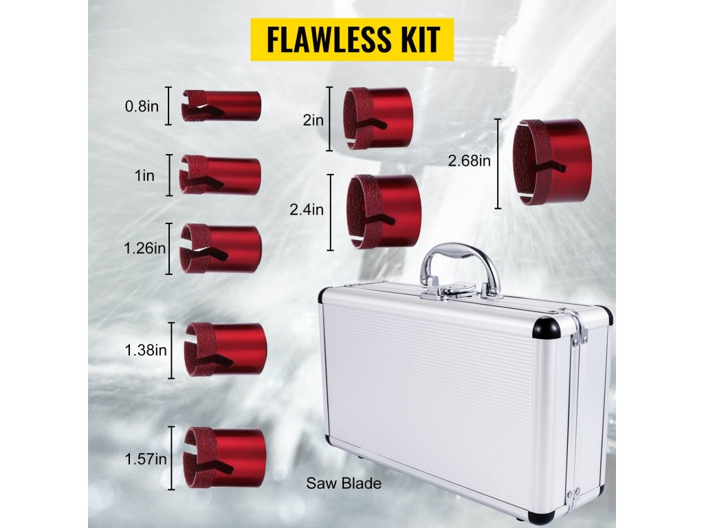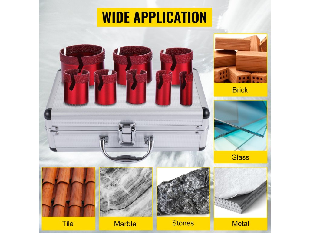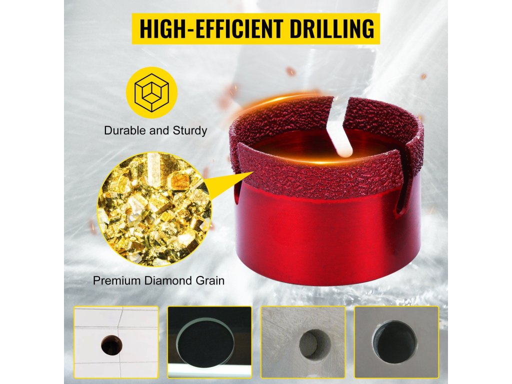 A csempefűrész tiszta és pontos lyukat biztosít a legtöbb kemény és koptató anyagon, például csempén, grániton, márványon, egyéb kövön és porcelánon.