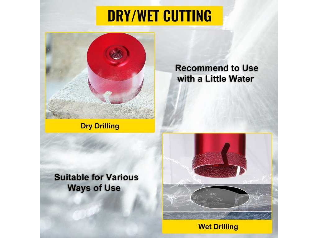 Ez a lyukfúró tetszőlegesen vágható nedves vagy száraz módon, hogy megfeleljen a különböző felhasználói környezeteknek. Egy kis víz simábbá teszi.