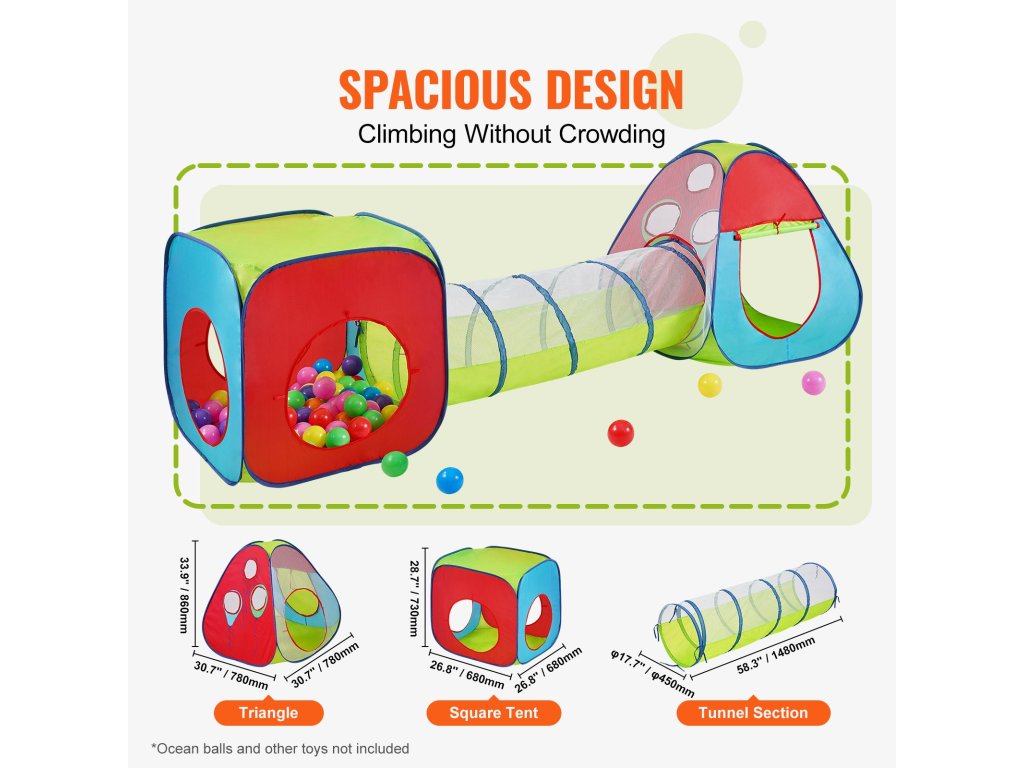 A mászóalagút különböző méretű gyermekeknek ad bőséges helyet a mászáshoz és a játékhoz anélkül, hogy szűkösnek éreznék magukat, 3 éves kortól ajánlott.