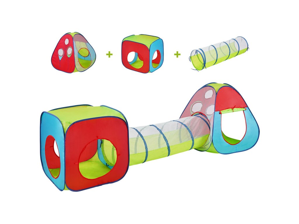 Gyerek 3 az 1-ben sátor alagúttal, felhajtható, táskával, piros-sárga-kék