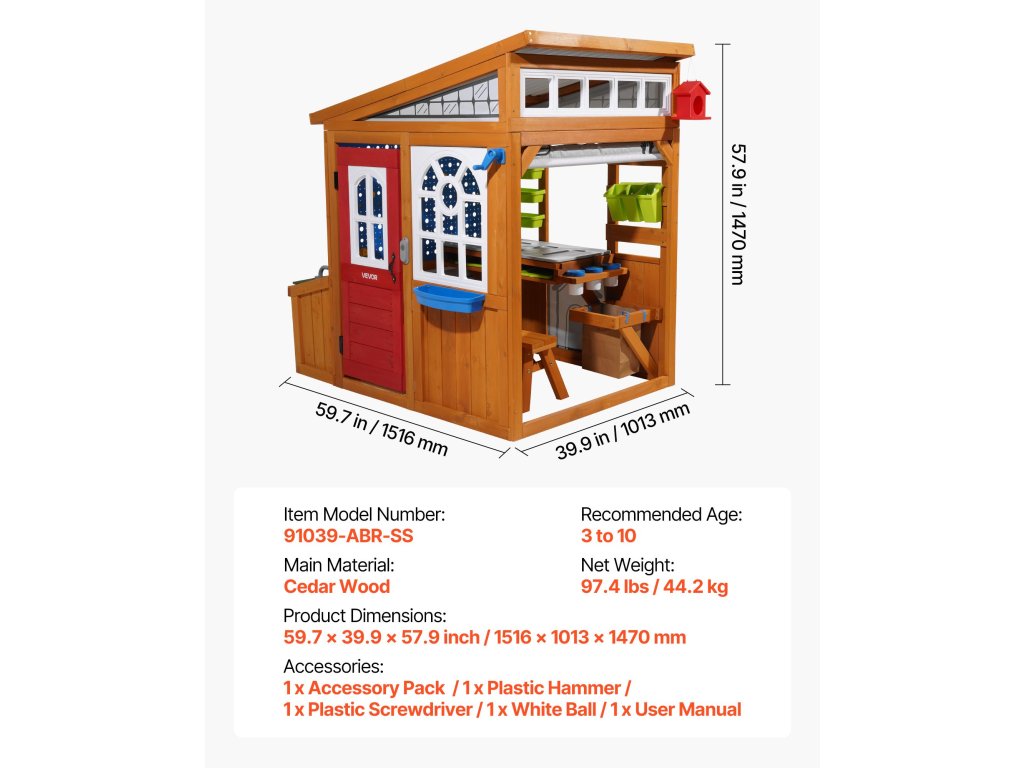 Ajándékozzon kreativitásra ösztönző ajándékot ezzel a cédrusfából készült VEVOR fa játszóházzal. Minden évszakban és 3-10 éves korú gyermekek számára alkalmas, végtelen fantáziadús játékot biztosít, segít a gyermekeknek felfedezni, szerepjátékot játszani és maradandó emlékeket létrehozni, amelyek felnőttkorukban is megmaradnak.
