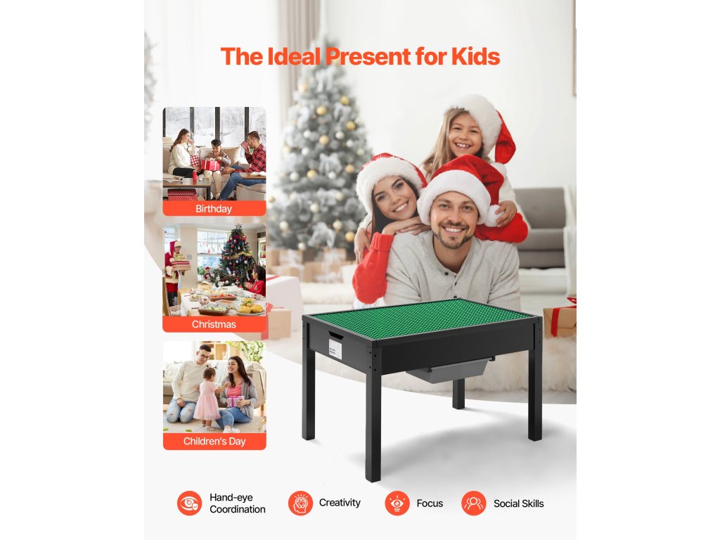 Ez a többcélú játékasztal ideális otthonokba, óvodákba, bölcsődékbe és játszóterekre. Segíti a gyermekek koordinációját és képzelőerejét, valamint a közös játék során elősegíti a csapatmunkát és a szociális készségeket.