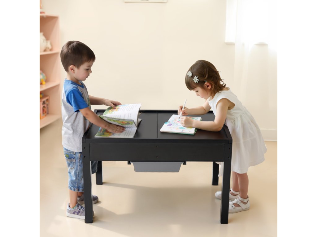 Gyerek fa foglalkoztató asztal kétoldalas táblával és 2 dobozzal 3+ éves kortól