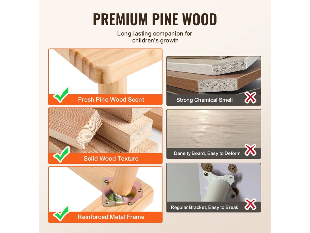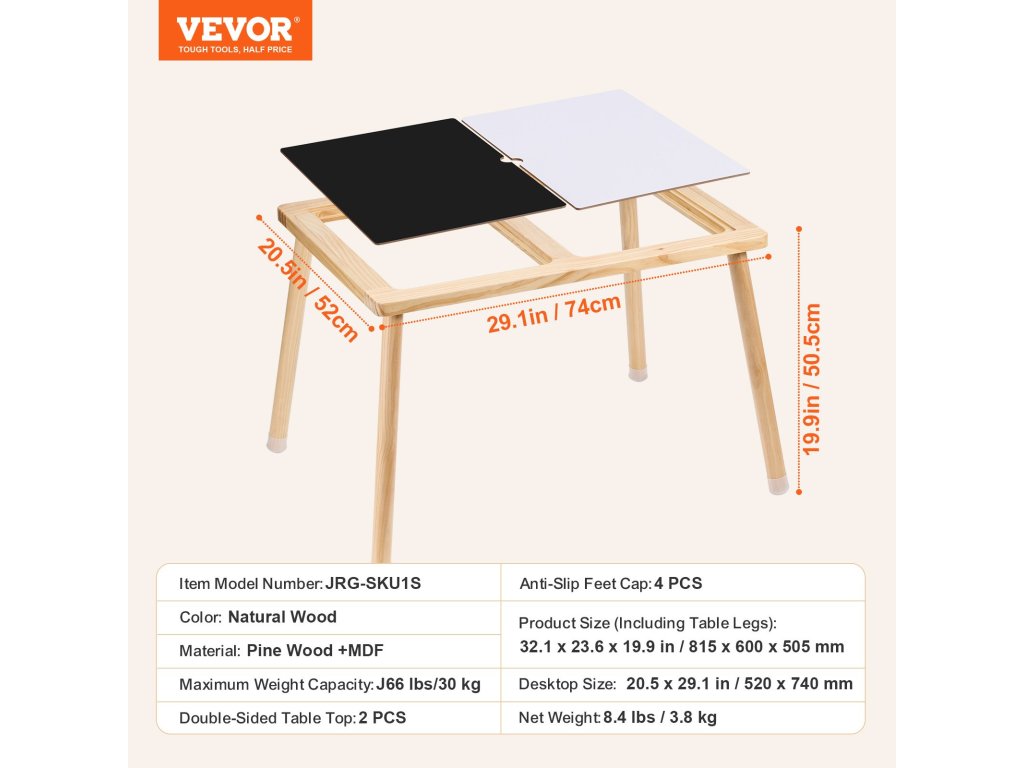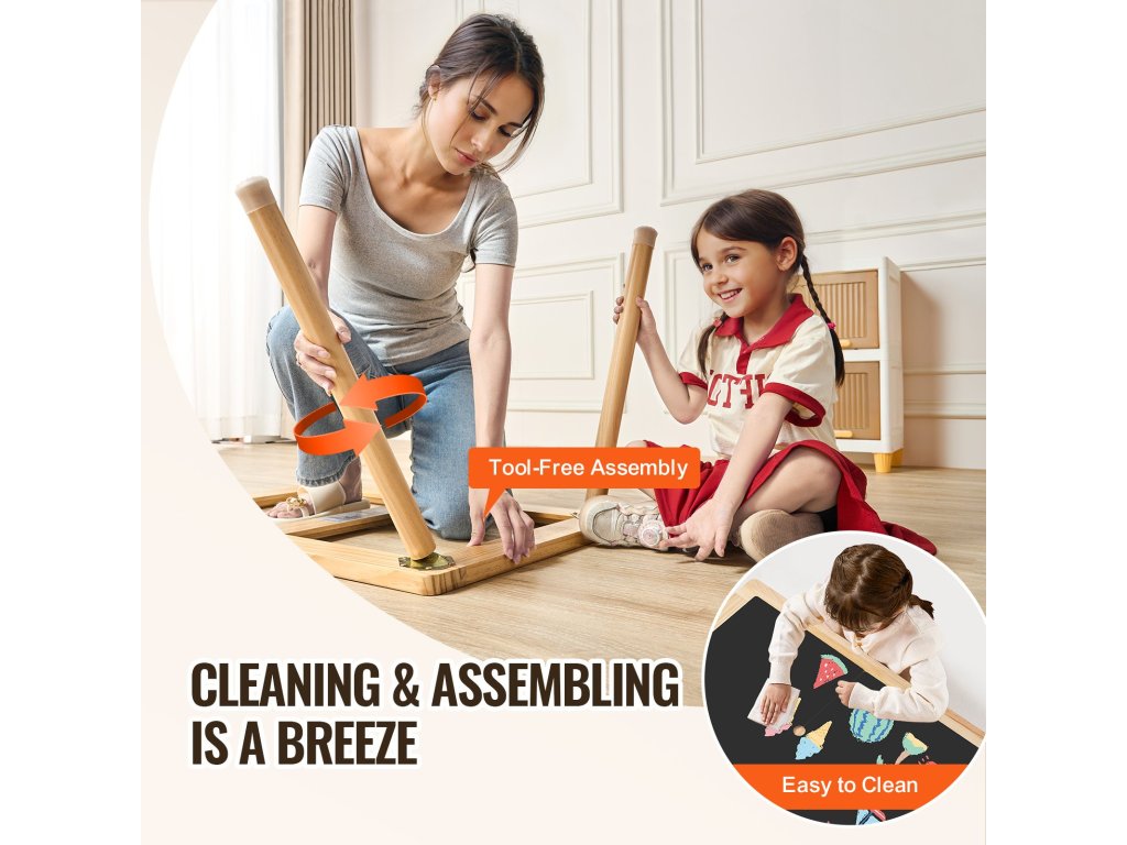 A VEVOR gyermek érzékelőasztal prémium minőségű természetes fenyőfából készült, sima lekerekített sarkokkal rendelkezik, és a biztonság érdekében lakkozott. A 2 kétoldalas táblával ösztönzi gyermeke kreativitását és tanulását, ideális olvasáshoz, festéshez, játékhoz, rajzoláshoz stb.