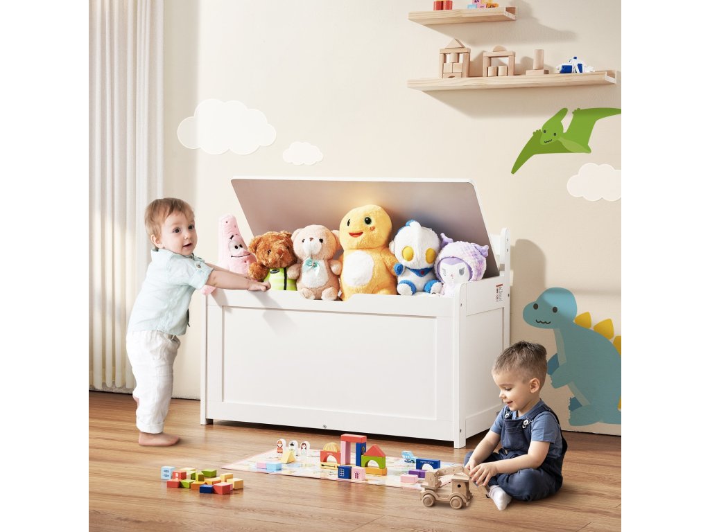 Ennek a fából készült játékládának lekerekített sarkai, amelyek megfelelnek a CPSIA nemzetközi szabványoknak és az amerikai CPC szabványoknak, megakadályozzák a véletlen ütődéseket, és biztonságos környezetet biztosítanak a játékhoz.