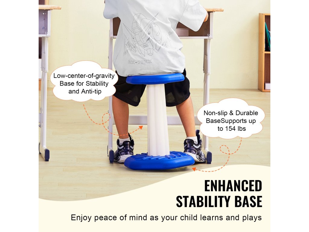 Ez az aktív szék az ülést szórakoztató játszótérré változtatja a gyermekek számára. Ideális arra, hogy az aktív, érzékszervi problémákkal küzdő vagy ADHD-s gyerekeket arra ösztönözze, hogy hosszabb ideig ülve maradjanak, és csökkentse a nyugtalanságot, így jobban tudnak koncentrálni.